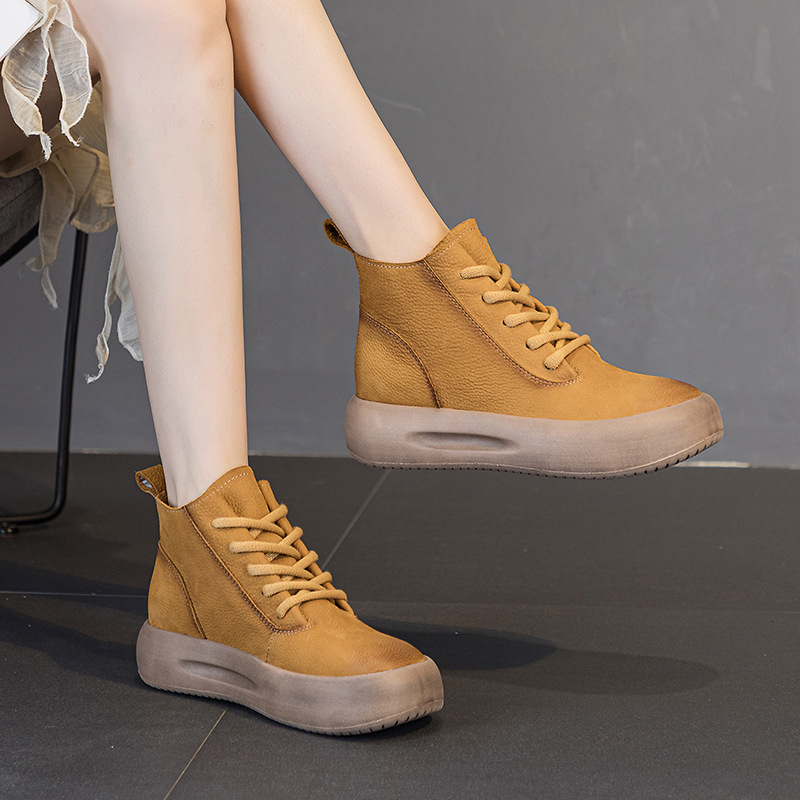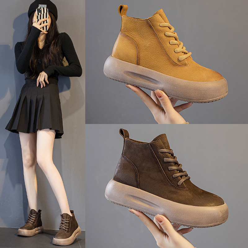 Главная страница > Осенне-зимние новые сапоги из натуральной кожи женские сапоги в стиле ретро с кружевной толстой подошвой кожи с круглым носком, сапоги из ревеня из воловьей кожи