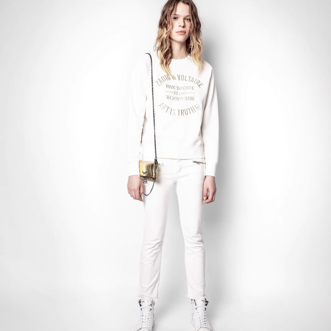 Главная страница > Женская черная классическая белая свободная толстовка из чистого хлопка с вышивкой букв ранней осени, новая французская ниша ZV
