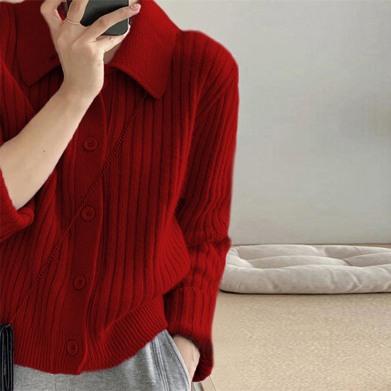 Главная страница > Женский вязаный кардиган KANING с воротником-поло, короткий, однотонный, в корейском стиле, новинка осени 2025