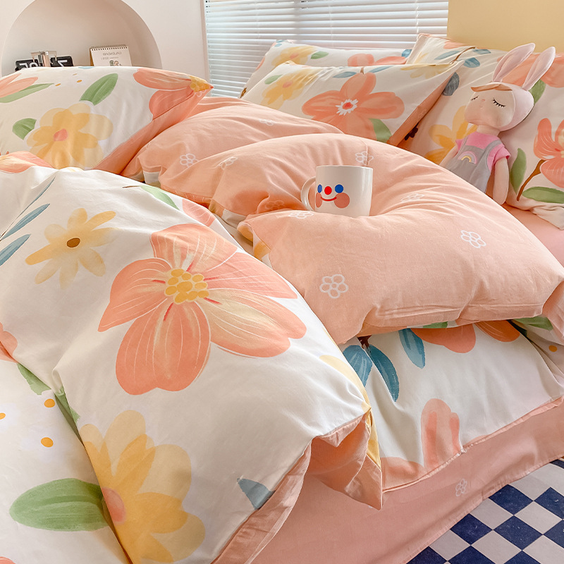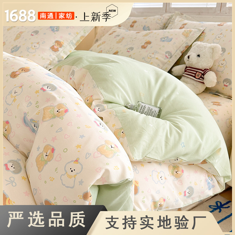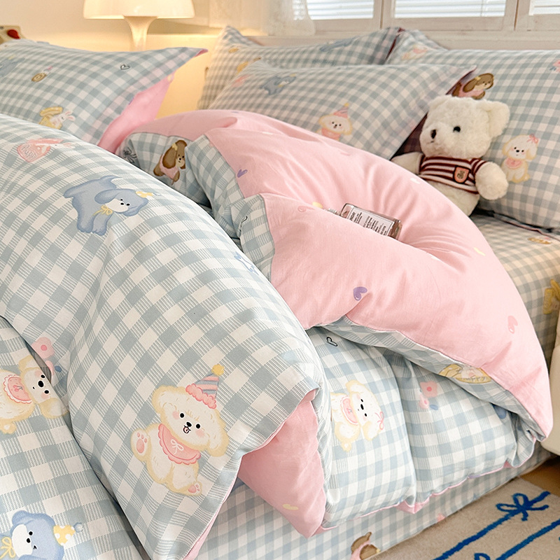 Комплект постельного белья из четырех предметов: пододеяльник из чистого хлопка, детский пододеяльник с мультяшным рисунком, простыня, комплект из трех предметов для общежития, пододеяльник.