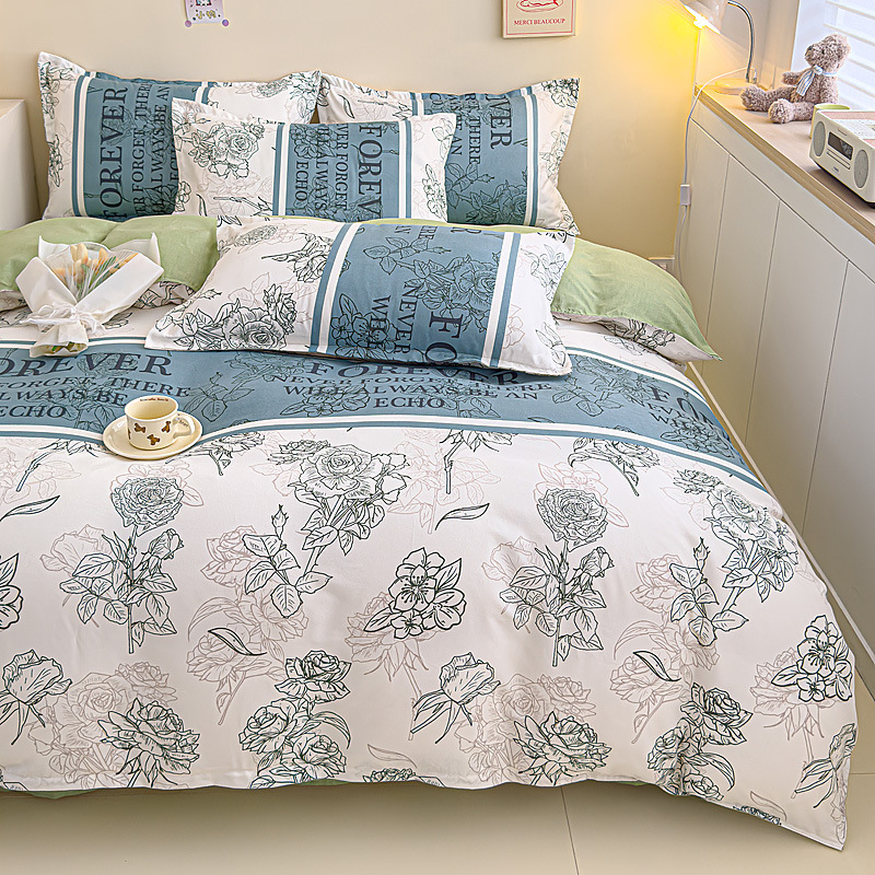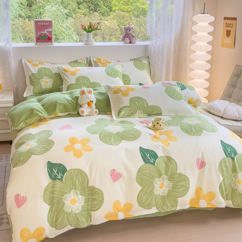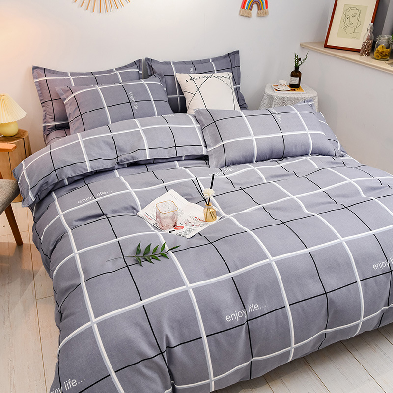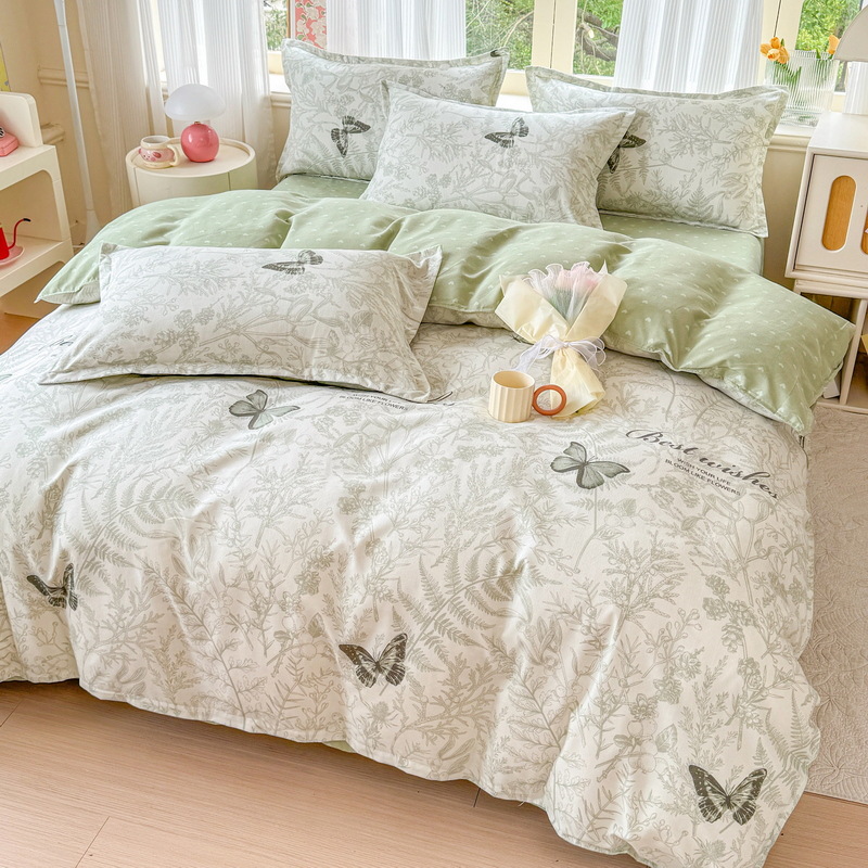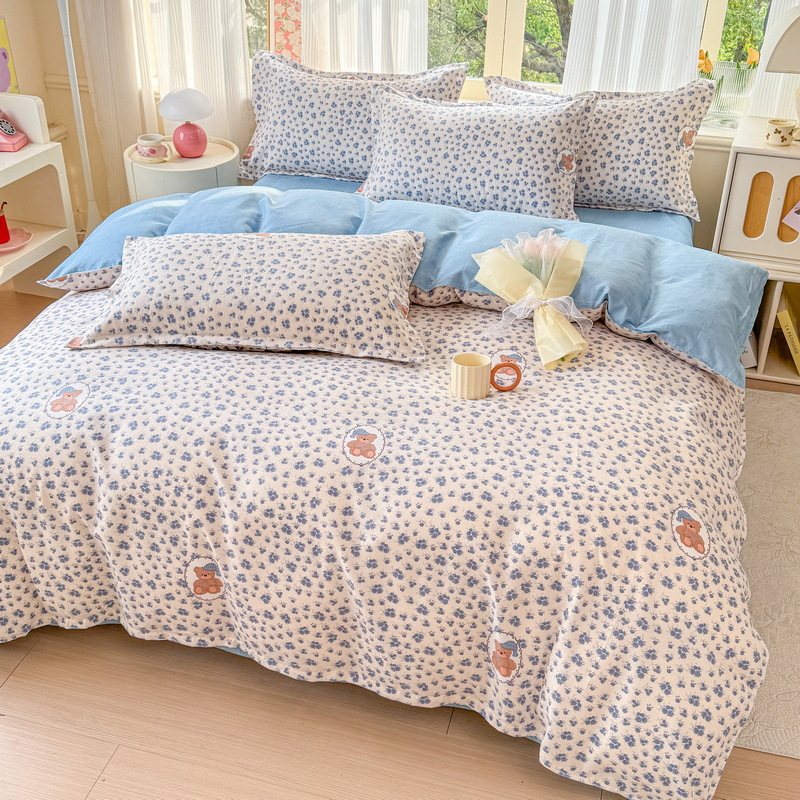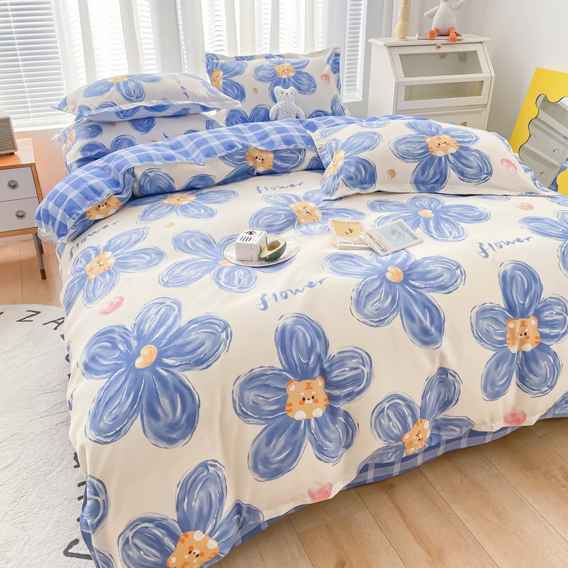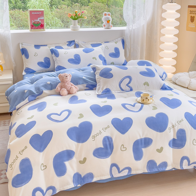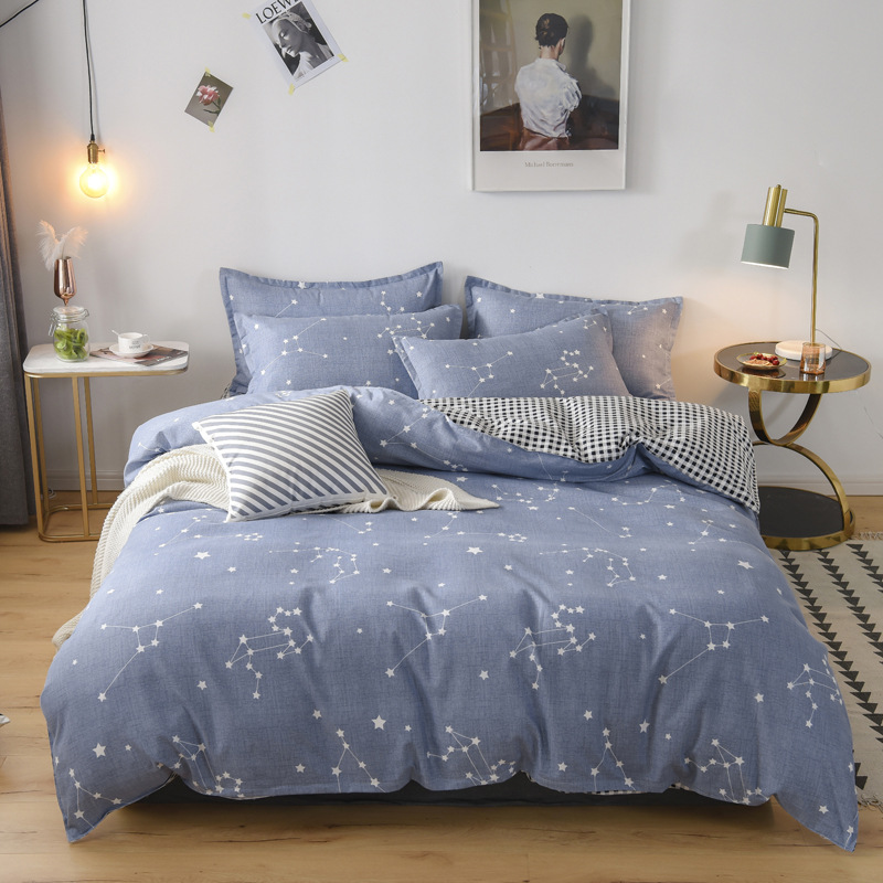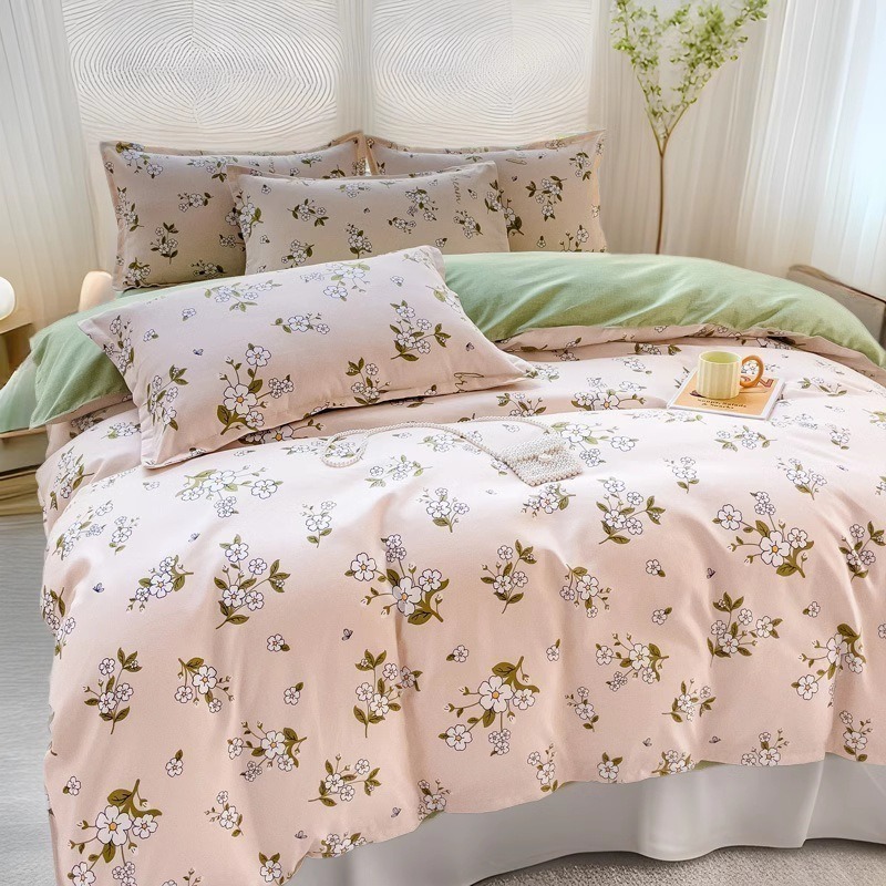 Комплект из четырех предметов класса А, утолщенный, с начесом, в свежем стиле: простыня, пододеяльник, простая наволочка, натяжная простыня. Комплект из трех предметов для студентов из стираного хлопка.