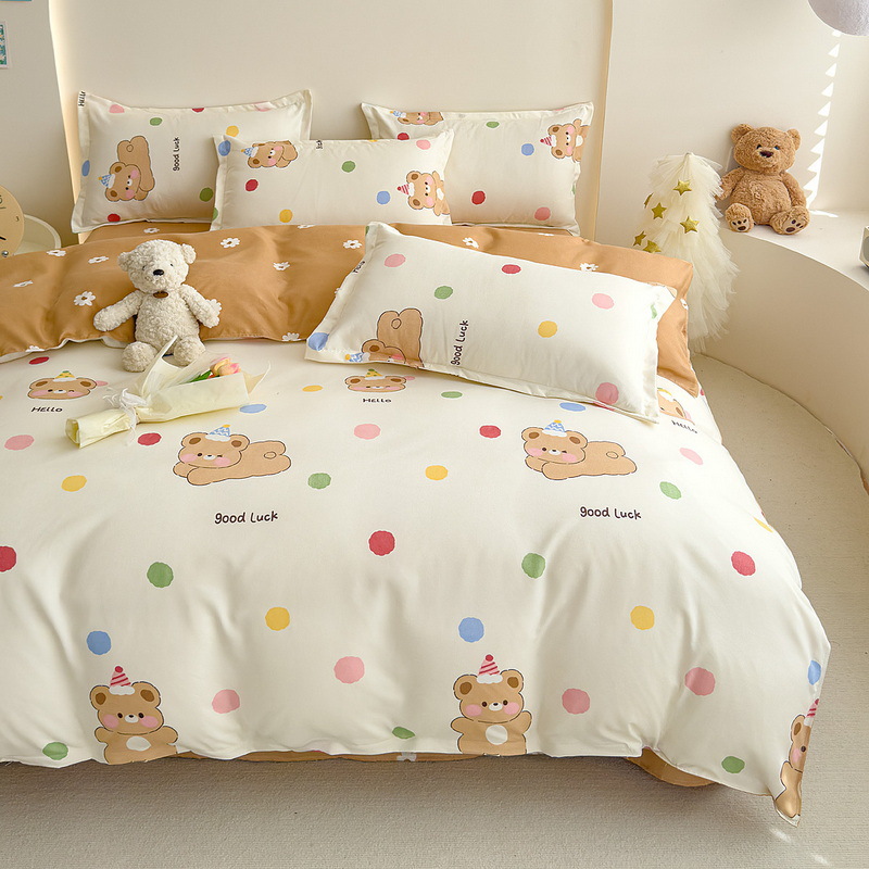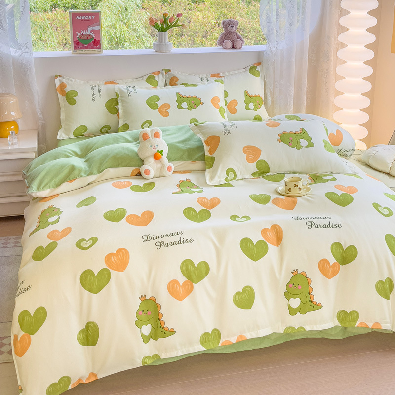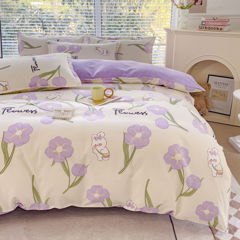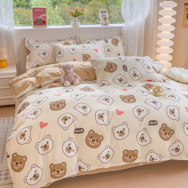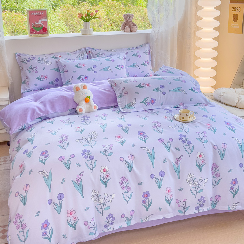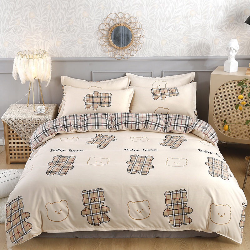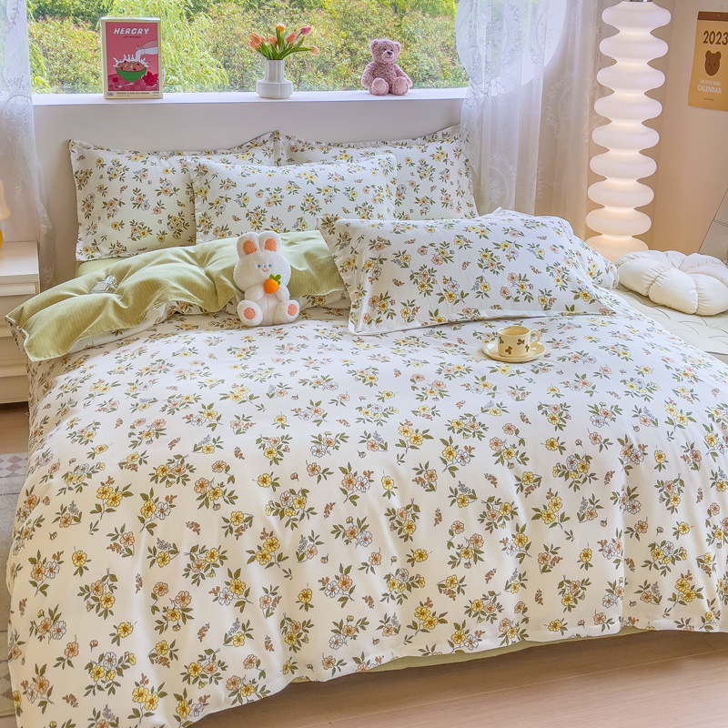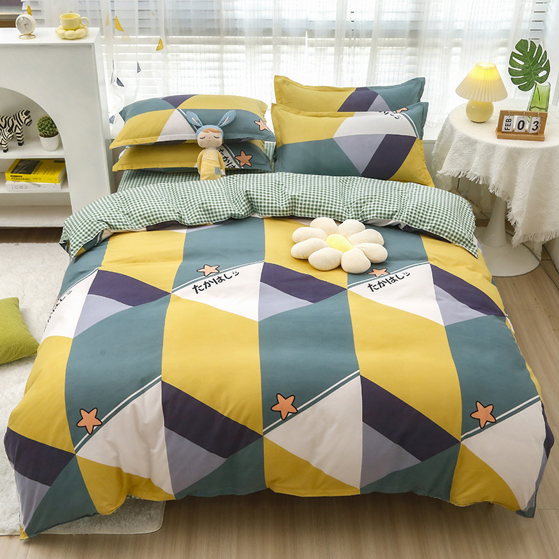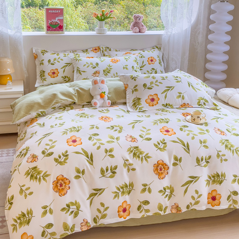 Комплект из четырех предметов класса А, утолщенный, с начесом, в свежем стиле: простыня, пододеяльник, простая наволочка, натяжная простыня. Комплект из трех предметов для студентов из стираного хлопка.