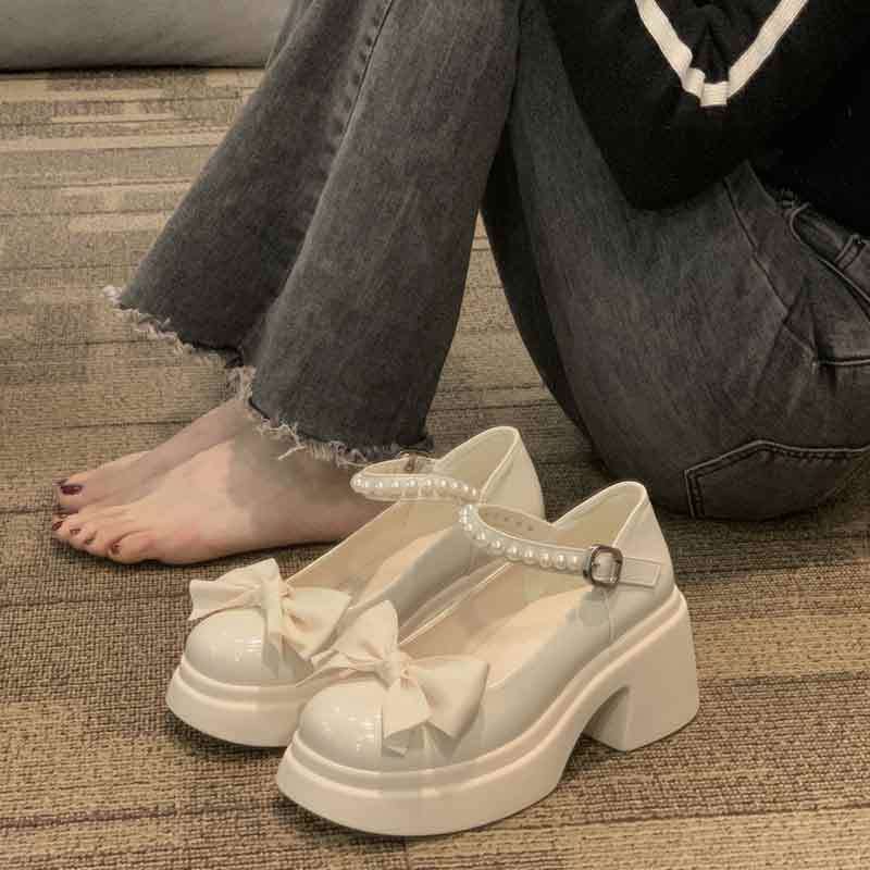 Главная страница > Маленькие кожаные туфли Мэри Джейн женские толстые подошвы увеличены весной и летом 2024 новый сладкий лук супер мягкий дикий одиночный ботинок