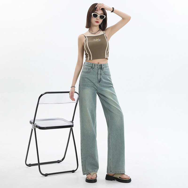 Главная страница > Черные и серые женские джинсы с высокой талией и широкими штанинами, новая модель осень-зима 2025, на флисовой подкладке, свободные и струящиеся прямые брюки, в американском ретро-стиле.