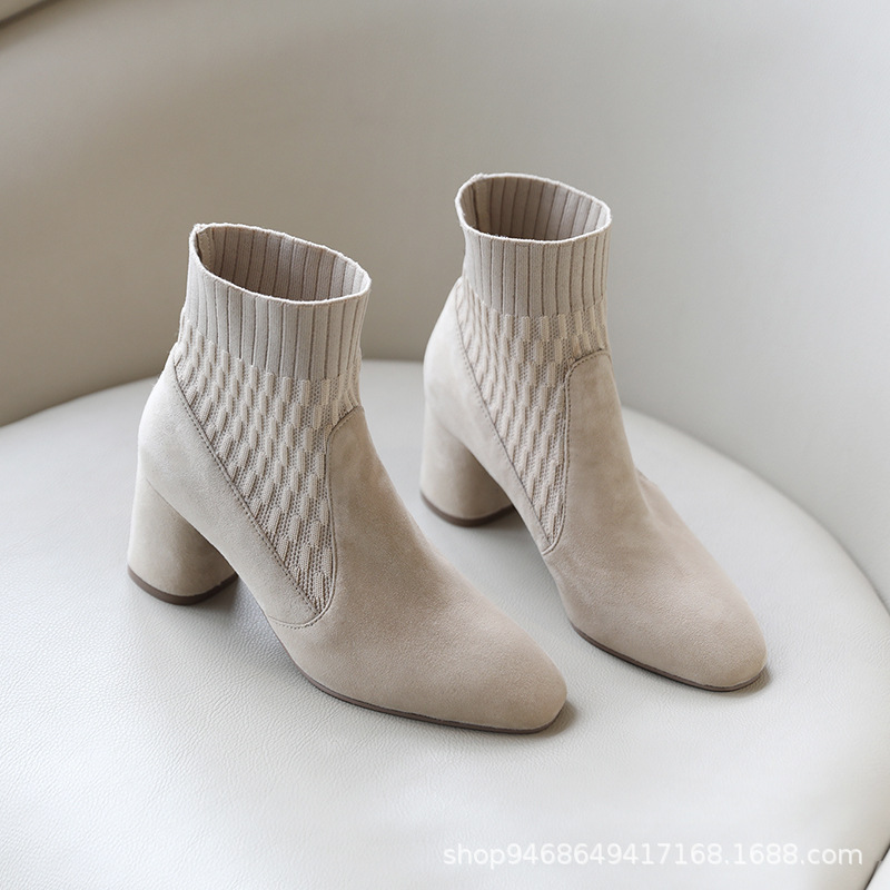 Главная страница > 2021 новый стиль вязаные носки с квадратной головкой абрикосовой прострочкой сапоги на толстом каблуке Тонкие ботильоны женские ботильоны одиночные сапоги женские Ботинки Martin