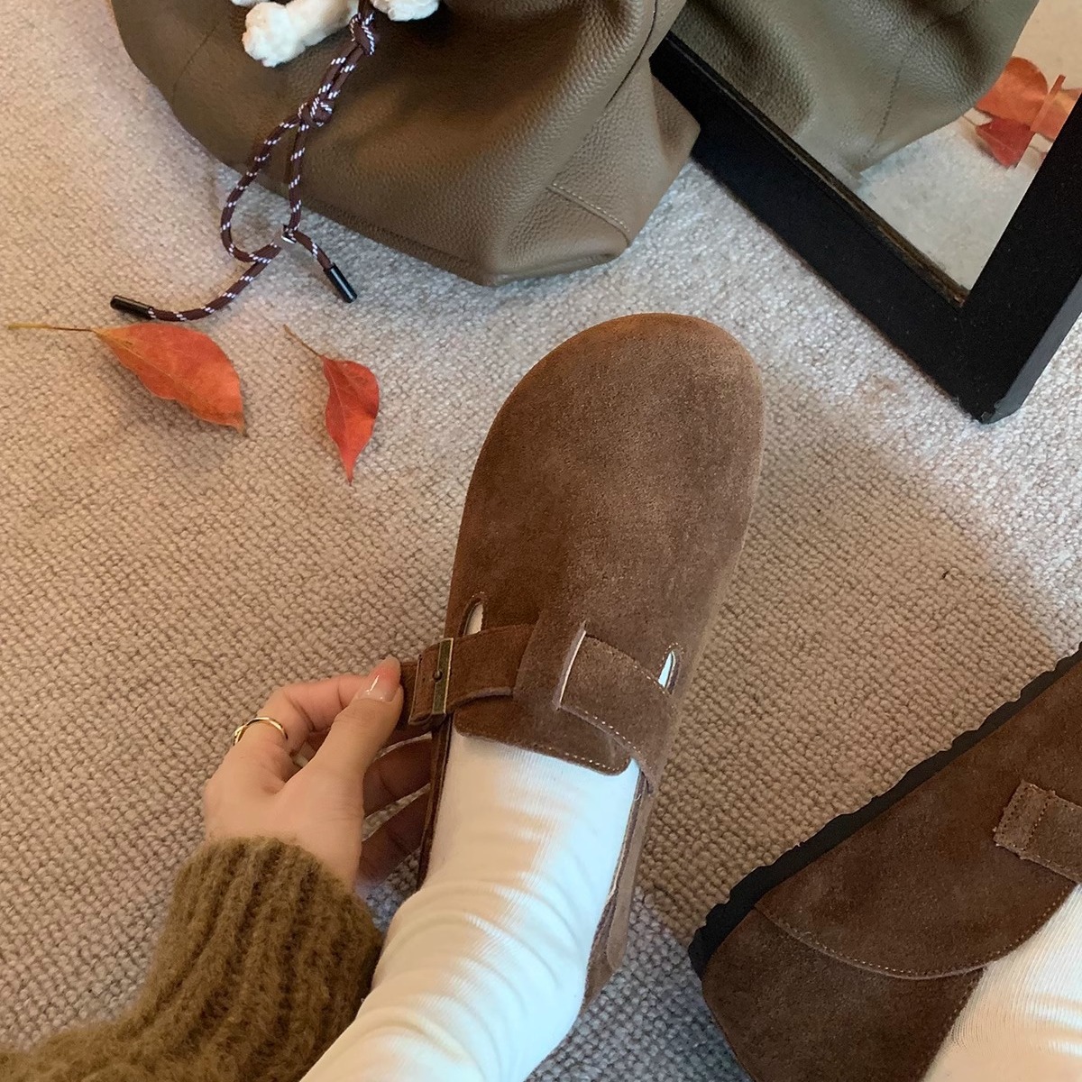 Главная страница > Кожаные туфли-слипоны из натуральной кожи в стиле Grape Mom с пряжкой на каблуке и толстой подошвой, повседневные, в стиле Birkenstock, модные.