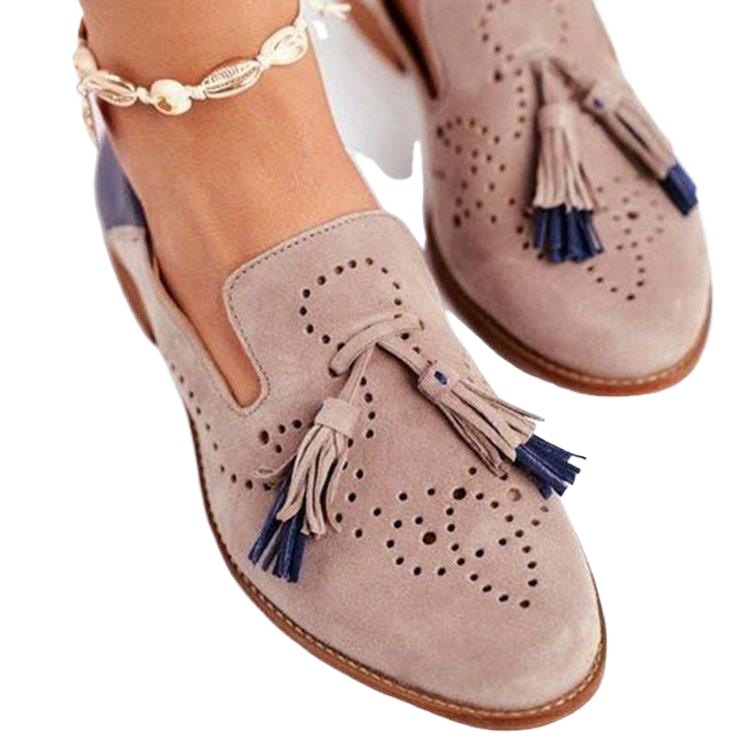 Главная страница > Независимая станция Amazon, осенняя новая Однослойная обувь, женская броги с круглым носком, однослойная обувь с резными кисточками, дышащая кожаная обувь оптом