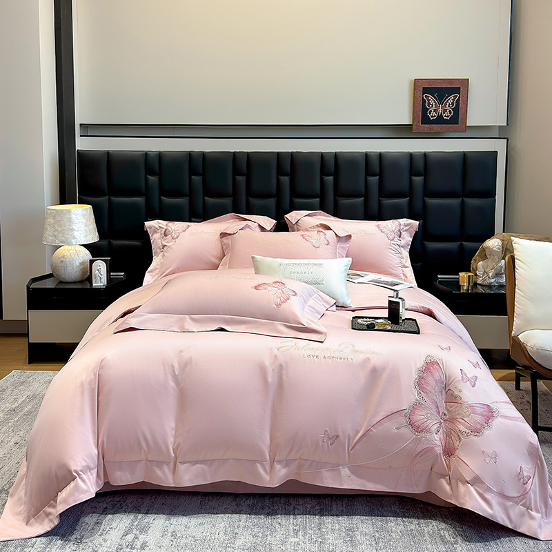 Главная страница > Высококачественный доступный роскошный комплект из четырех предметов из длинноволокнистого хлопка на 60 штук с хлопковым пододеяльником с вышивкой бабочки, простые хлопковые простыни, постельное белье