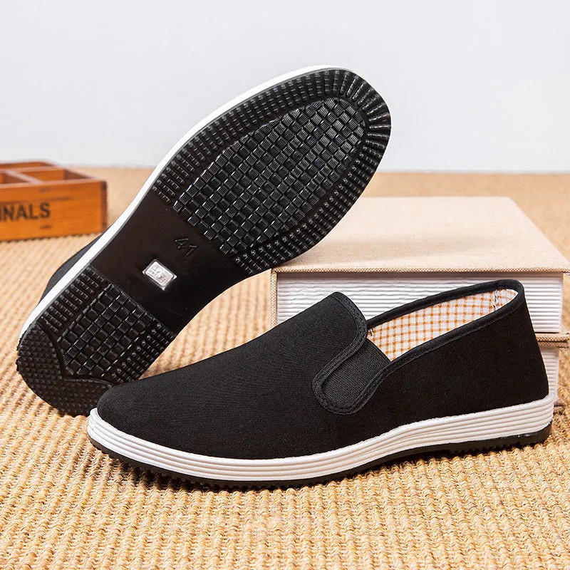 Резиновая подошва-черные тканевые туфли