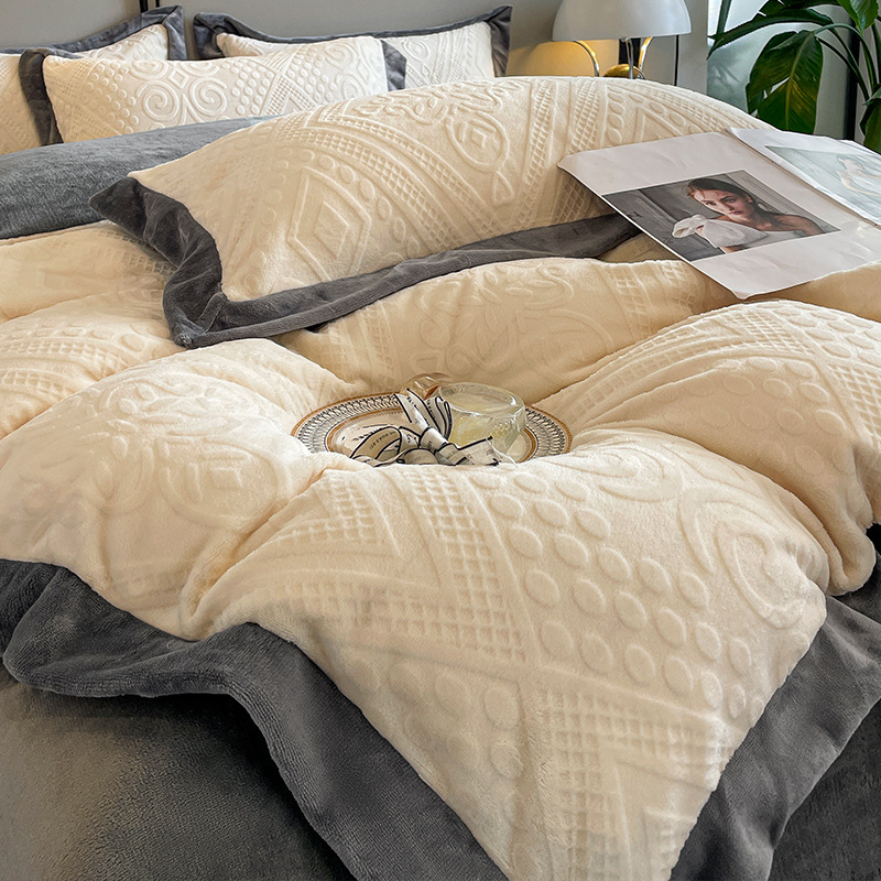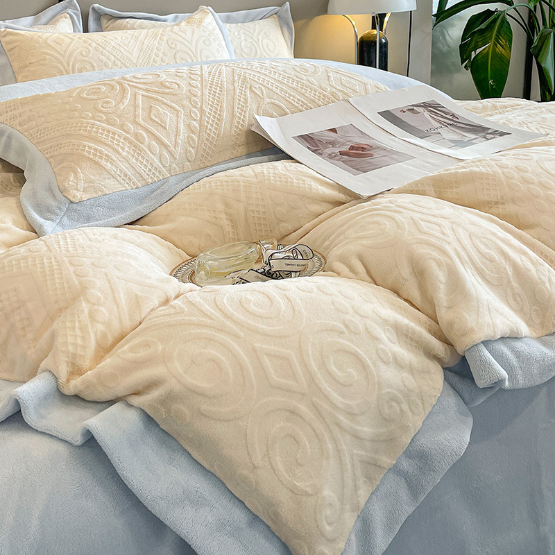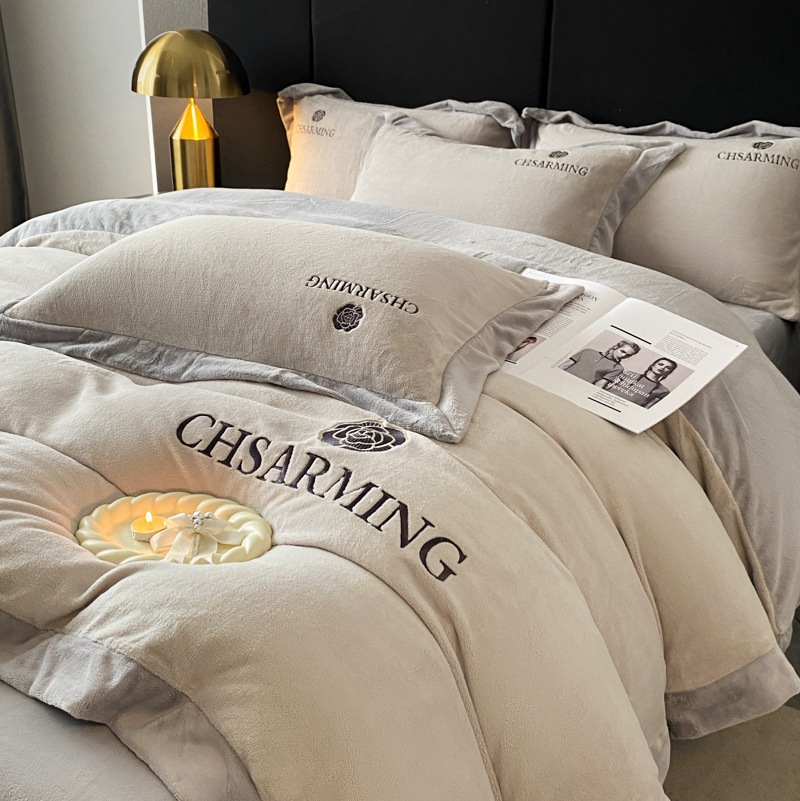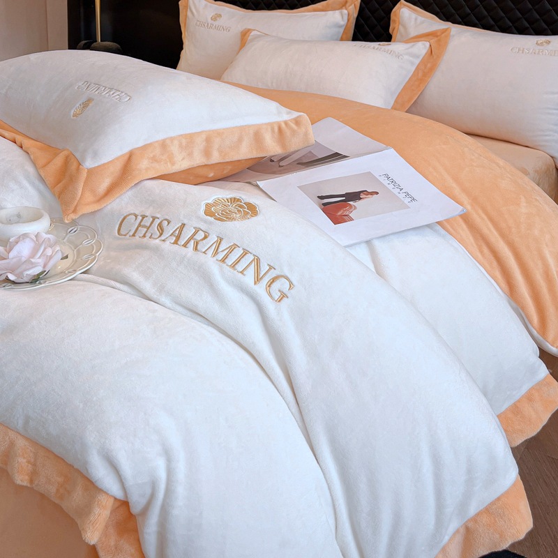 Главная страница > Легкий Роскошный вышитый молочный Бархатный комплект из четырех предметов, зимний утолщенный коралловый флис, фланелевая простыня, пододеяльник, комплект из трех предметов