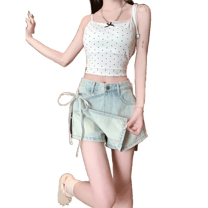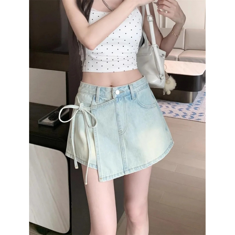 Главная страница > Женские джинсовые шорты 2024, летние тонкие шорты-юбка трапециевидной формы с завышенной талией и завышенной талией для миниатюрных женщин.