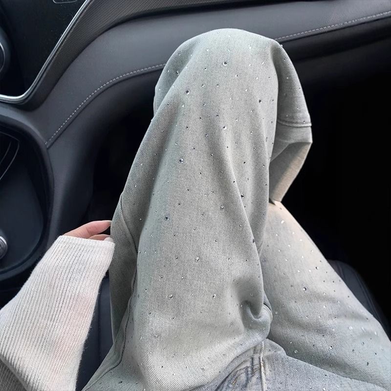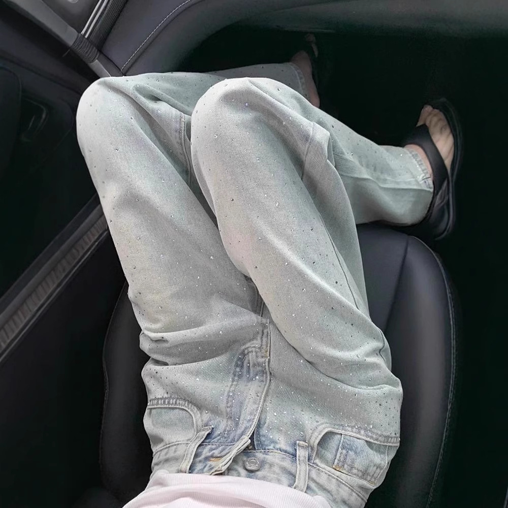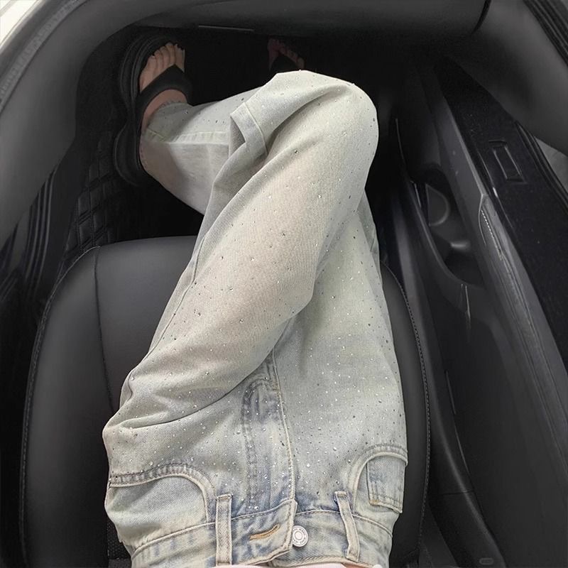 Главная страница > Ретро светлый цвет тяжелые стили прямые джинсы женский 2025 весенний дизайн с высокой талией тонкие повседневные широкие брюки