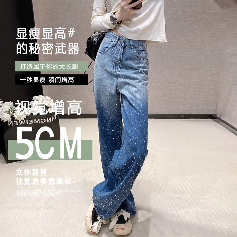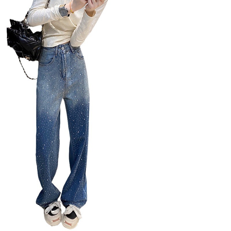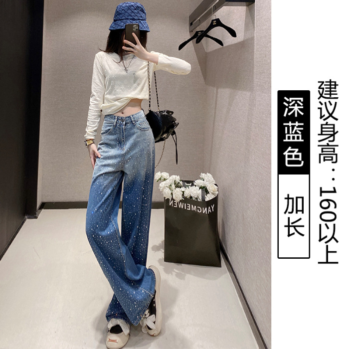 Главная страница > Темно-синие джинсовые широкие брюки женские весенние 2025 новые дикие градиентные штанги с высокой талией тонкие горячие брюки
