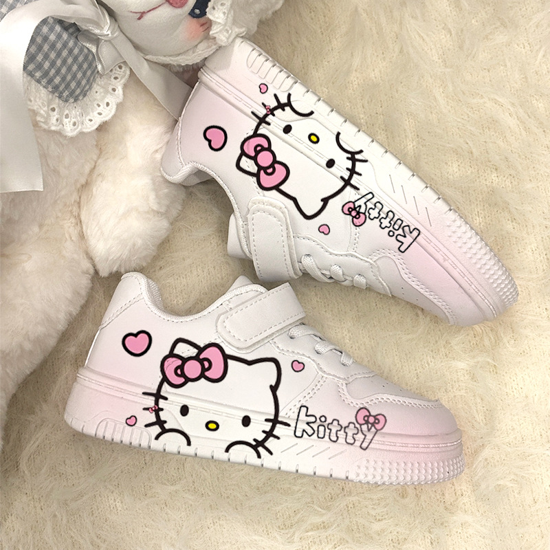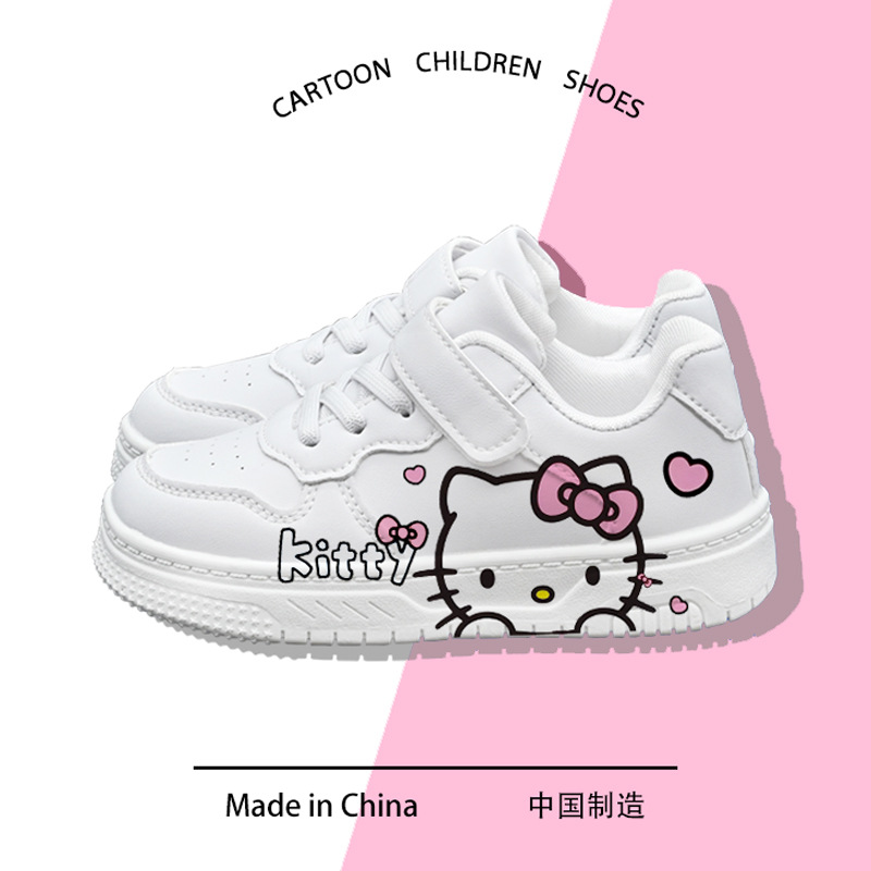 Главная страница > Модная детская обувь совместного бренда Hello Kitty, белые туфли с низким берцем для девочек, универсальные модные кроссовки с героями мультфильмов