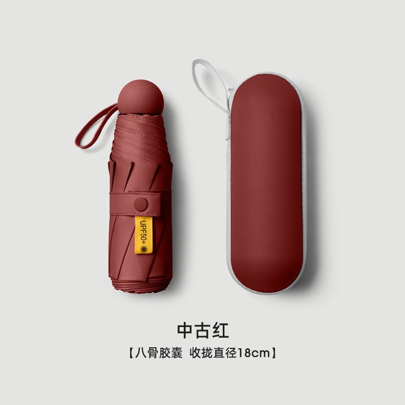 Главная страница > Мини-пятикратный солнцезащитный зонт, утолщенный черный клей, Солнцезащитный зонт, женский маленький портативный капсульный Зонт двойного назначения с принтом