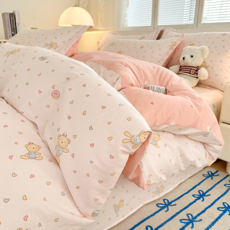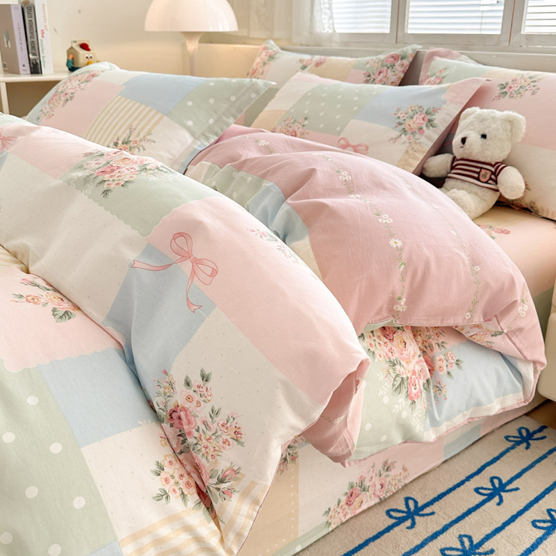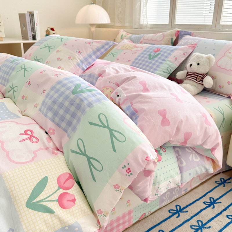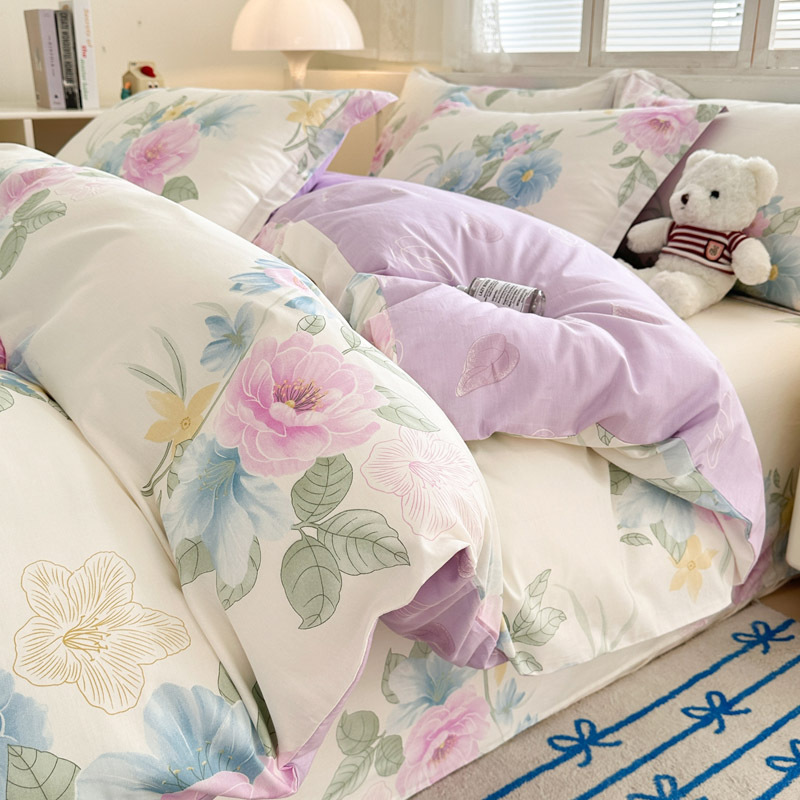 Главная страница > Комплект из четырех предметов из чистого хлопка с мультяшным цветочным рисунком, 100% хлопок, приятный для кожи, дышащий, обнаженный, пододеяльник для сна, простыни, пододеяльник, комплект из трех предметов для общежития