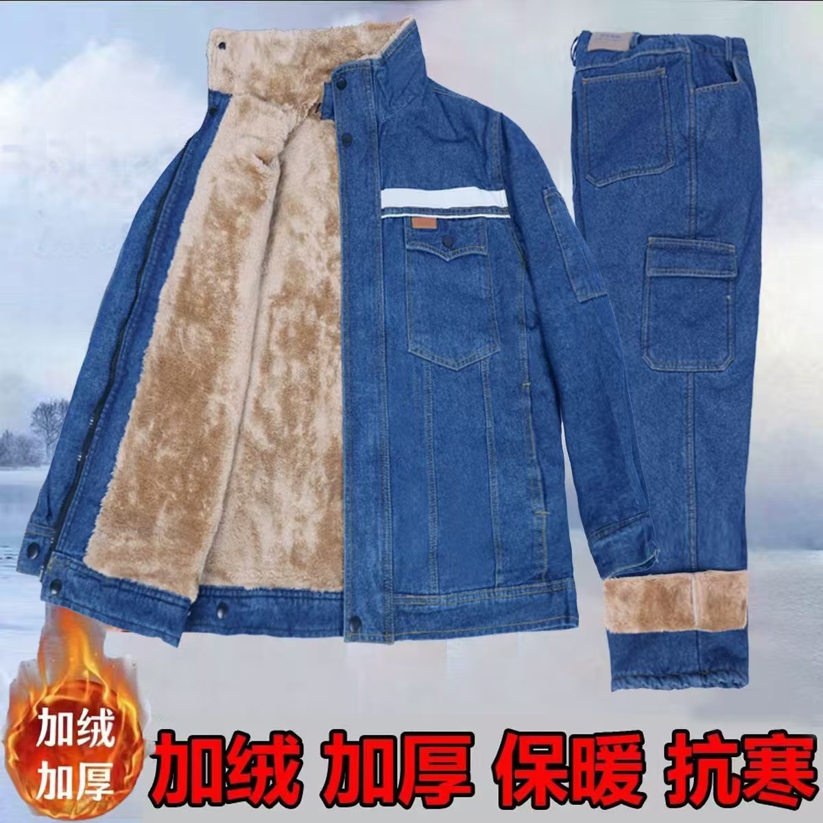 Зимний флисовый джинсовый рабочий костюм для мужчин, утолщенная спецодежда для сварки, защитная одежда электрика от ожогов