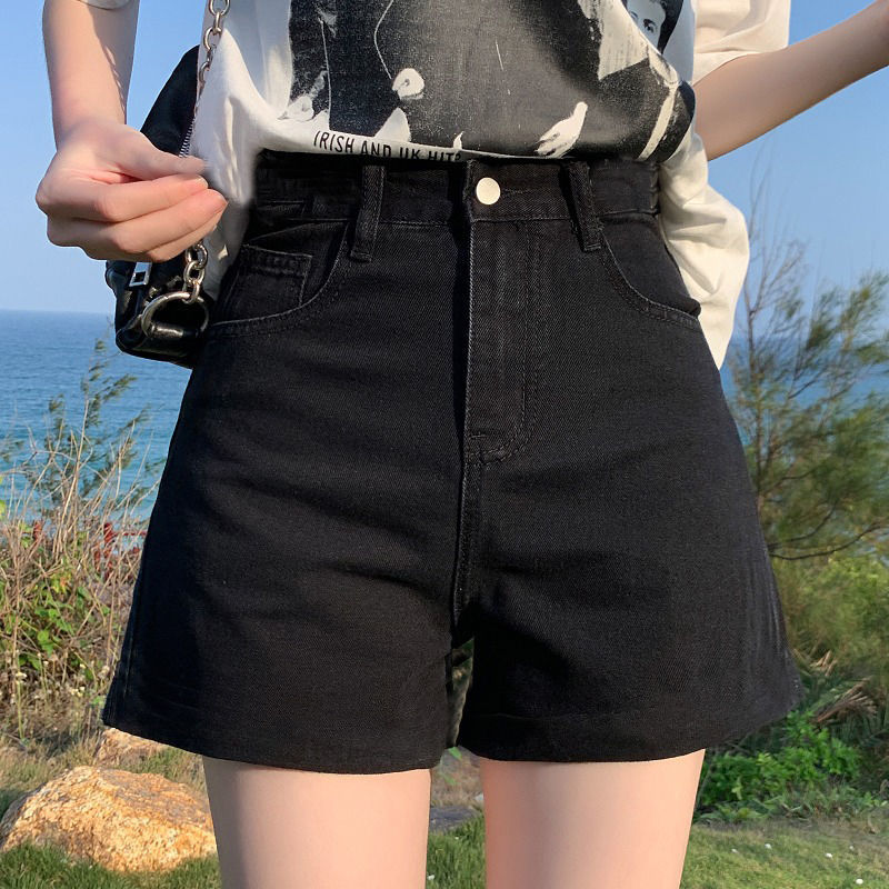 Главная страница > Свободные, тонкие и универсальные джинсовые шорты с высокой талией для женщин, летние трапециевидные шорты 2025 года, новые широкие маленькие прямые студенческие шорты