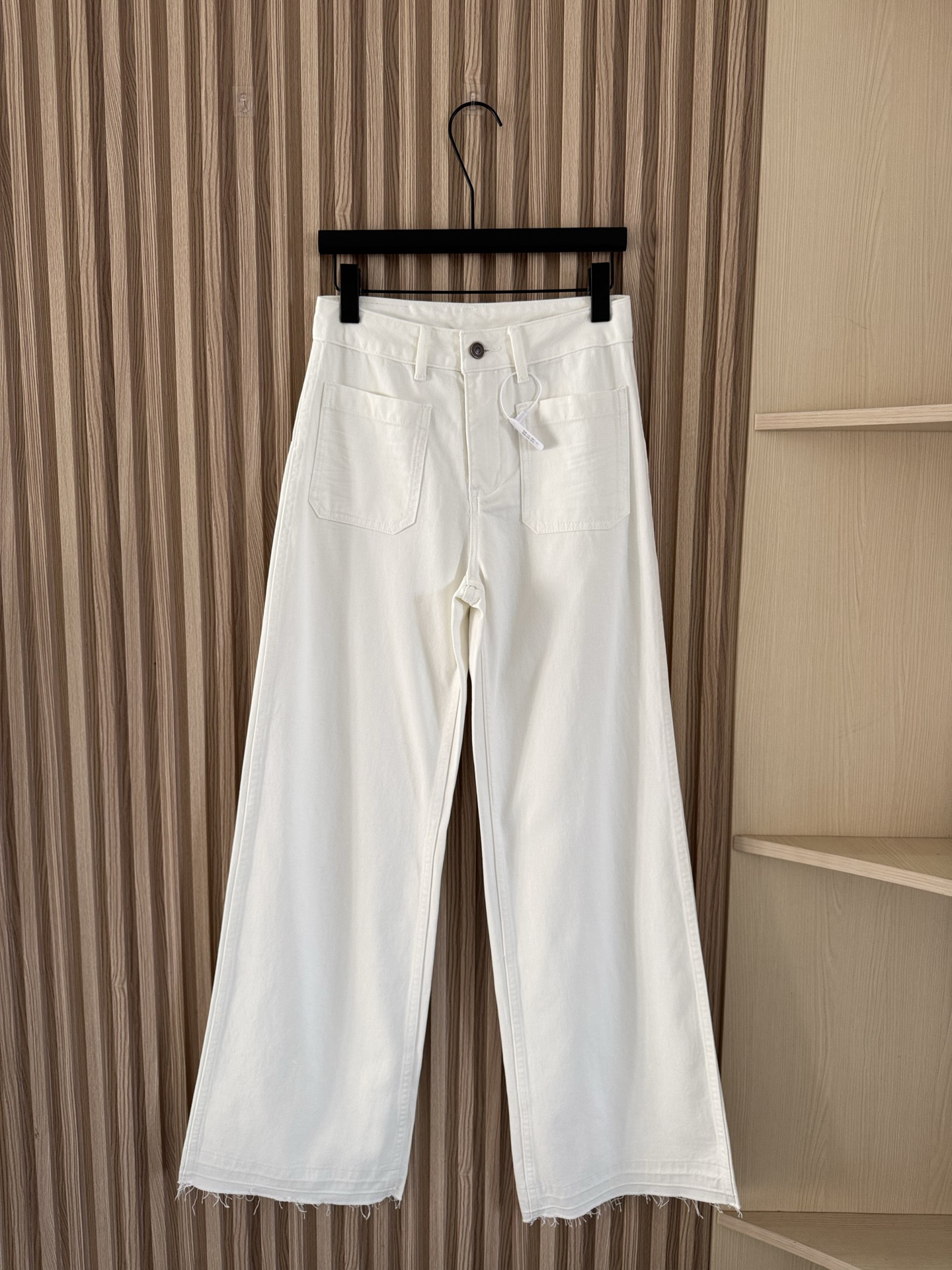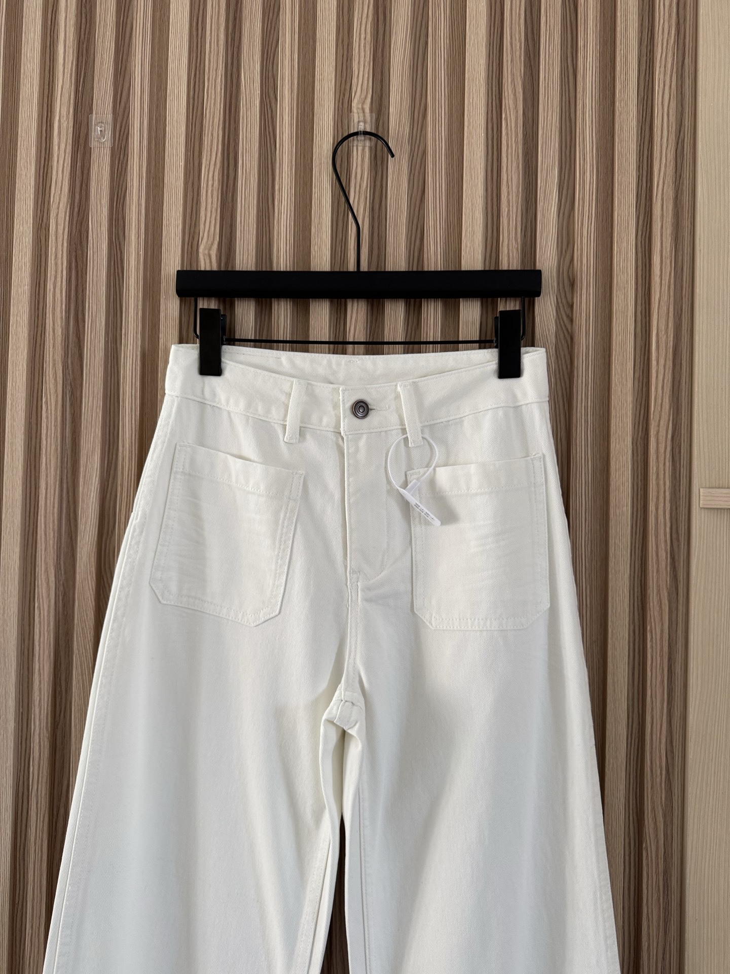 Главная страница > 2025 новый стиль Nanwao высокого класса женская одежда CD белый карман плиссированные брюки с высокой талией прямые джинсы с широкими ножками