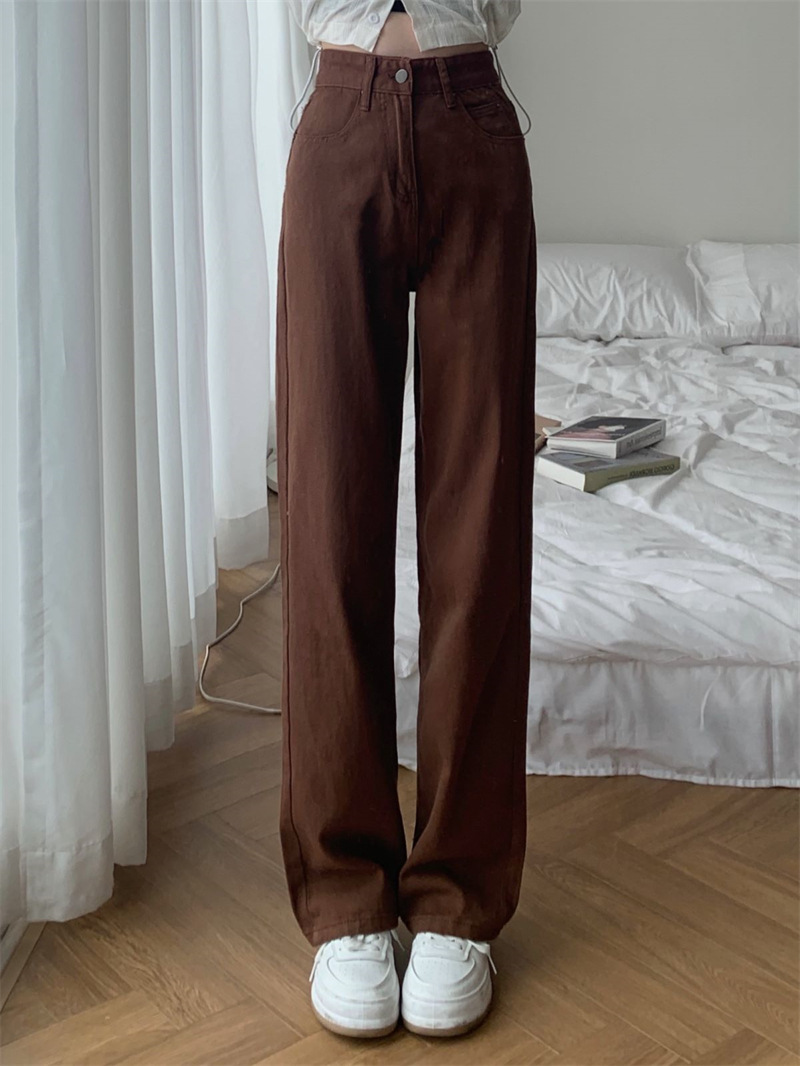 Главная страница > Коричневые джинсы для женщин 2023 Новые осенне-зимние прямые свободные широкие брюки с высокой талией и драпировкой, брюки для похудения для папы, мода
