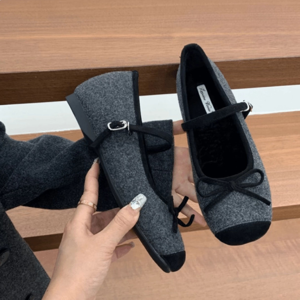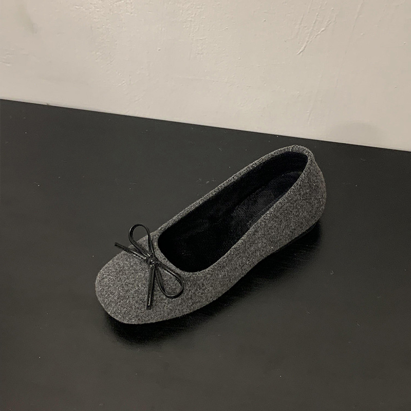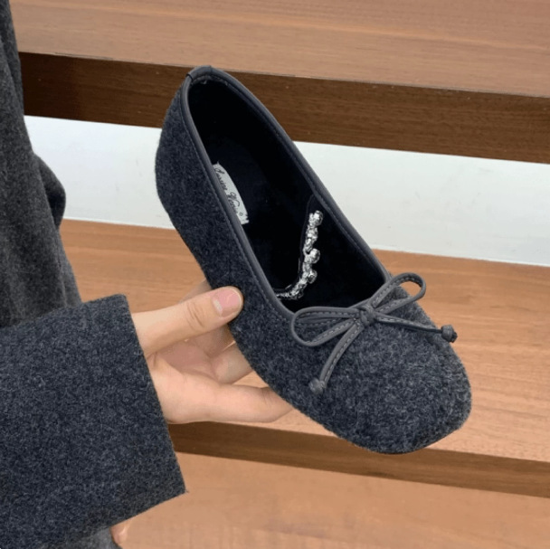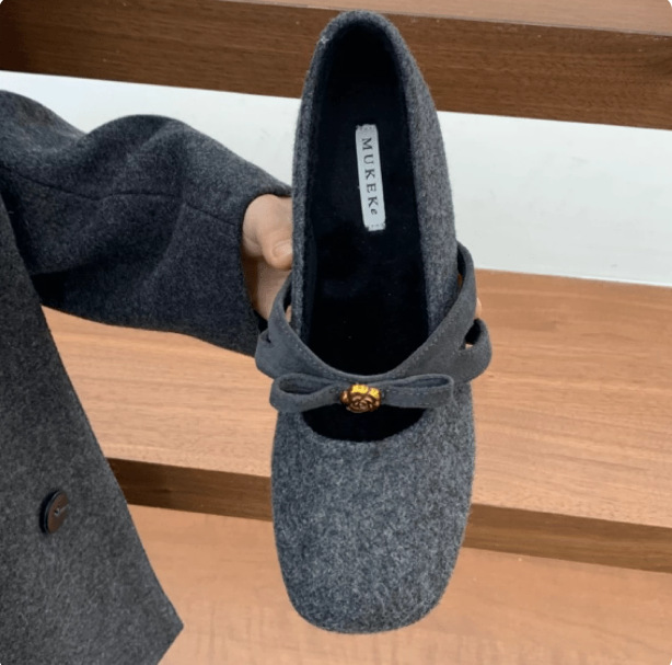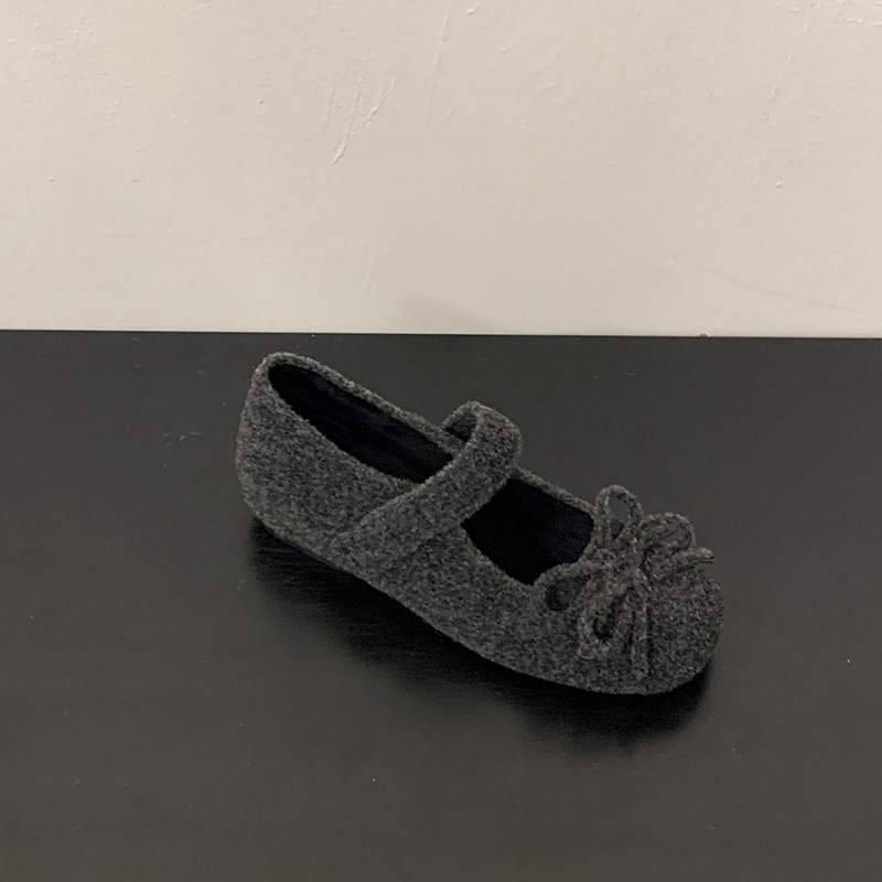 Главная страница > MUKEKe, женская хлопковая обувь на плоской подошве на флисовой подкладке, внутренняя высота 4 см, осенне-зимняя обувь серого цвета с бантом, меховые туфли Мэри Джейн на мягкой подошве