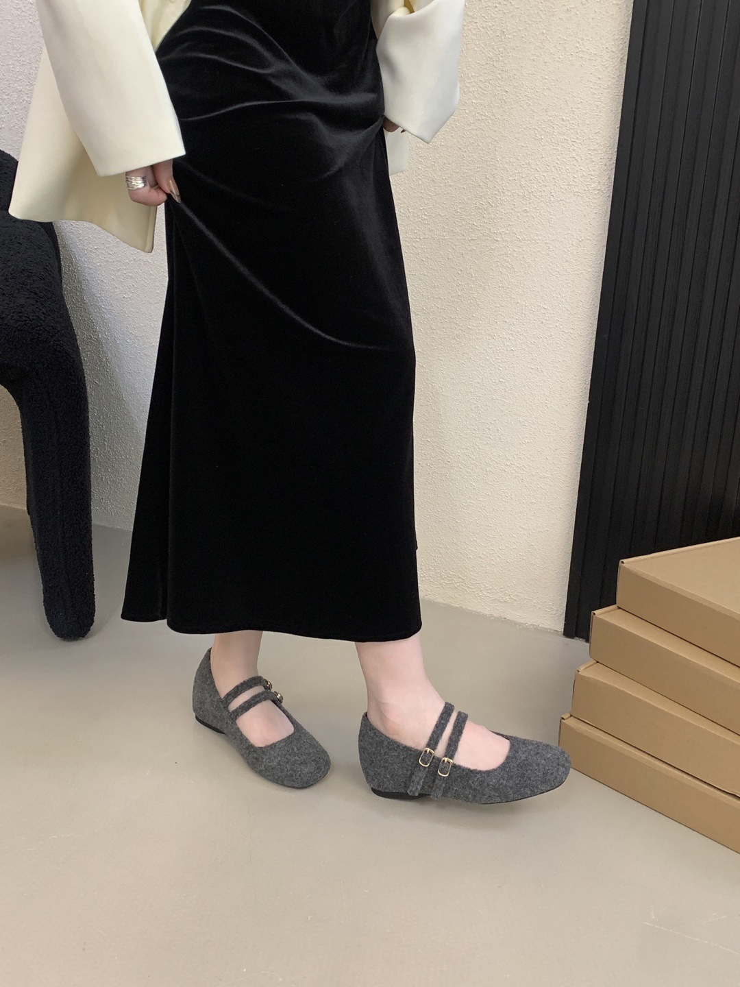 1206-13 Серый бархатный Мэри Джейн