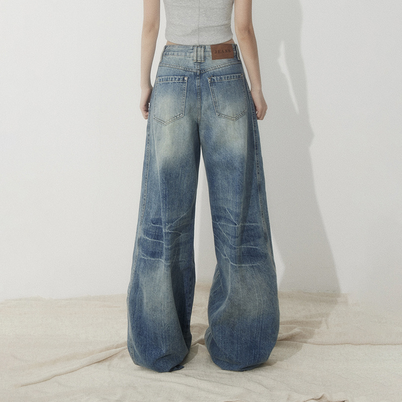 Главная страница > Американский ретро с высокой талией свободные широкие брюки для нишевых дизайнов серповые брюки высокие уличные джинсы женские и длинные брюки