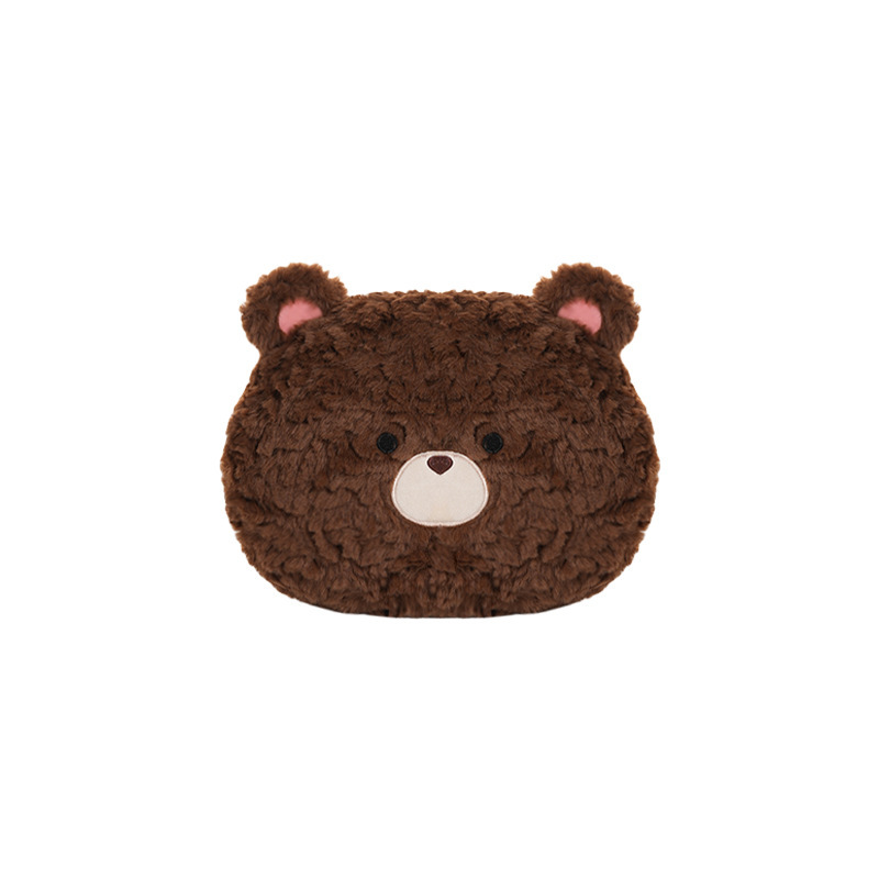 Подушка в виде головы медведя из полированного кроличьего меха, темно-кофейного цвета