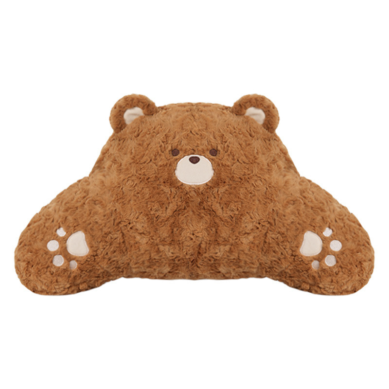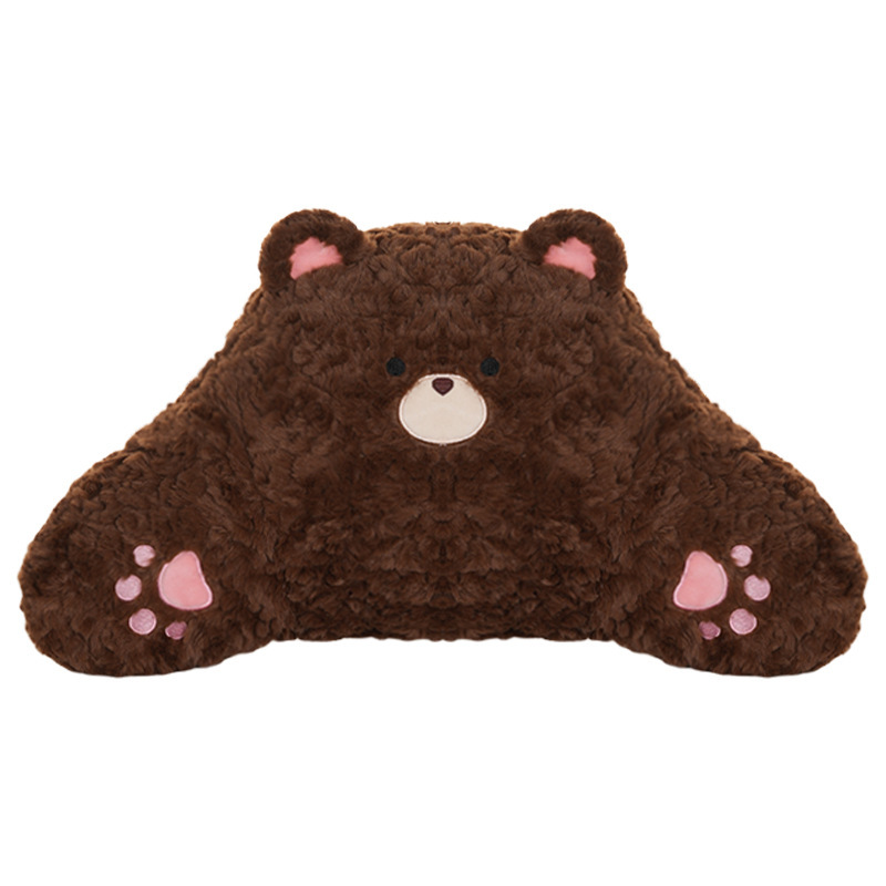 Подушка-спинка в виде медведя с цветком из кроличьего меха