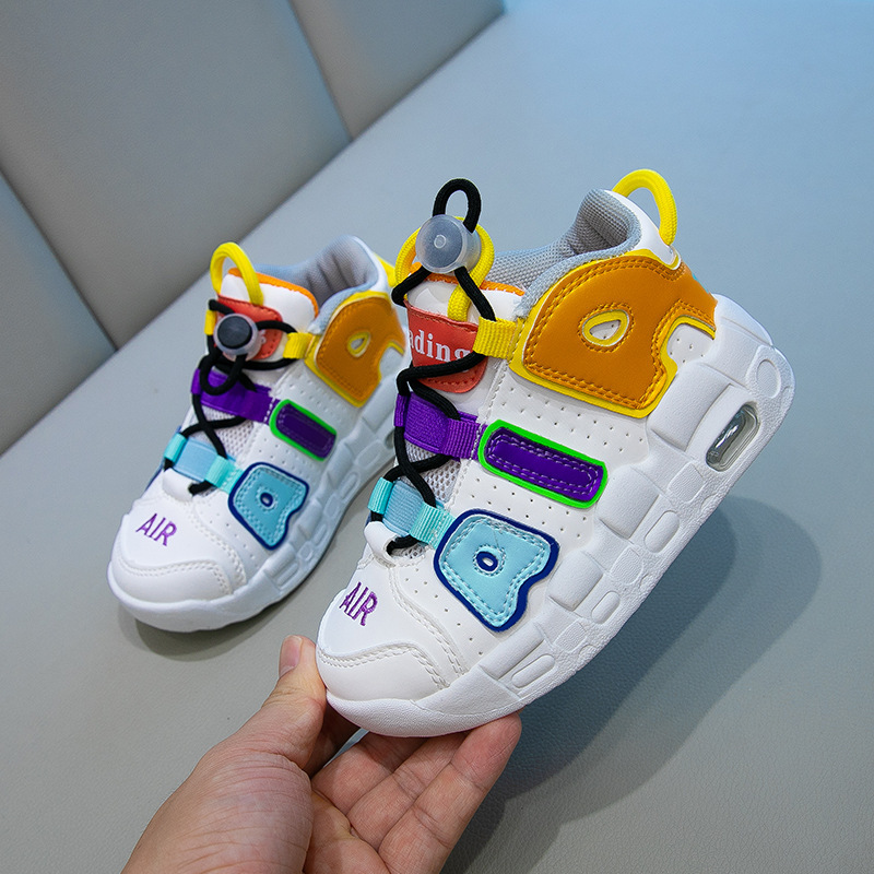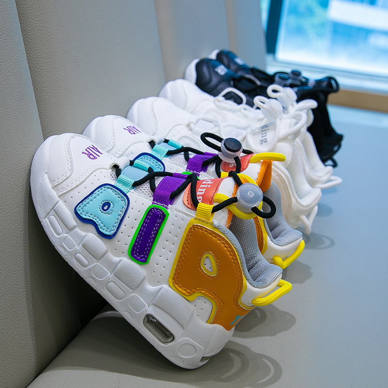 Детская обувь на воздушной подушке высокая банда спортивная детская обувь новая девушка 2024 мягкая подошва баскетбол цветные повседневные дышащие маленькие белые туфли