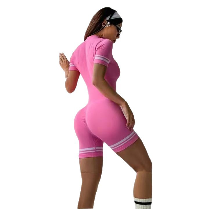 Главная страница > Бесшовные полосатые шорты с молнией, короткий рукав, цельный спортивный костюм для йоги, фитнеса и активного отдыха, облегающий женский комбинезон