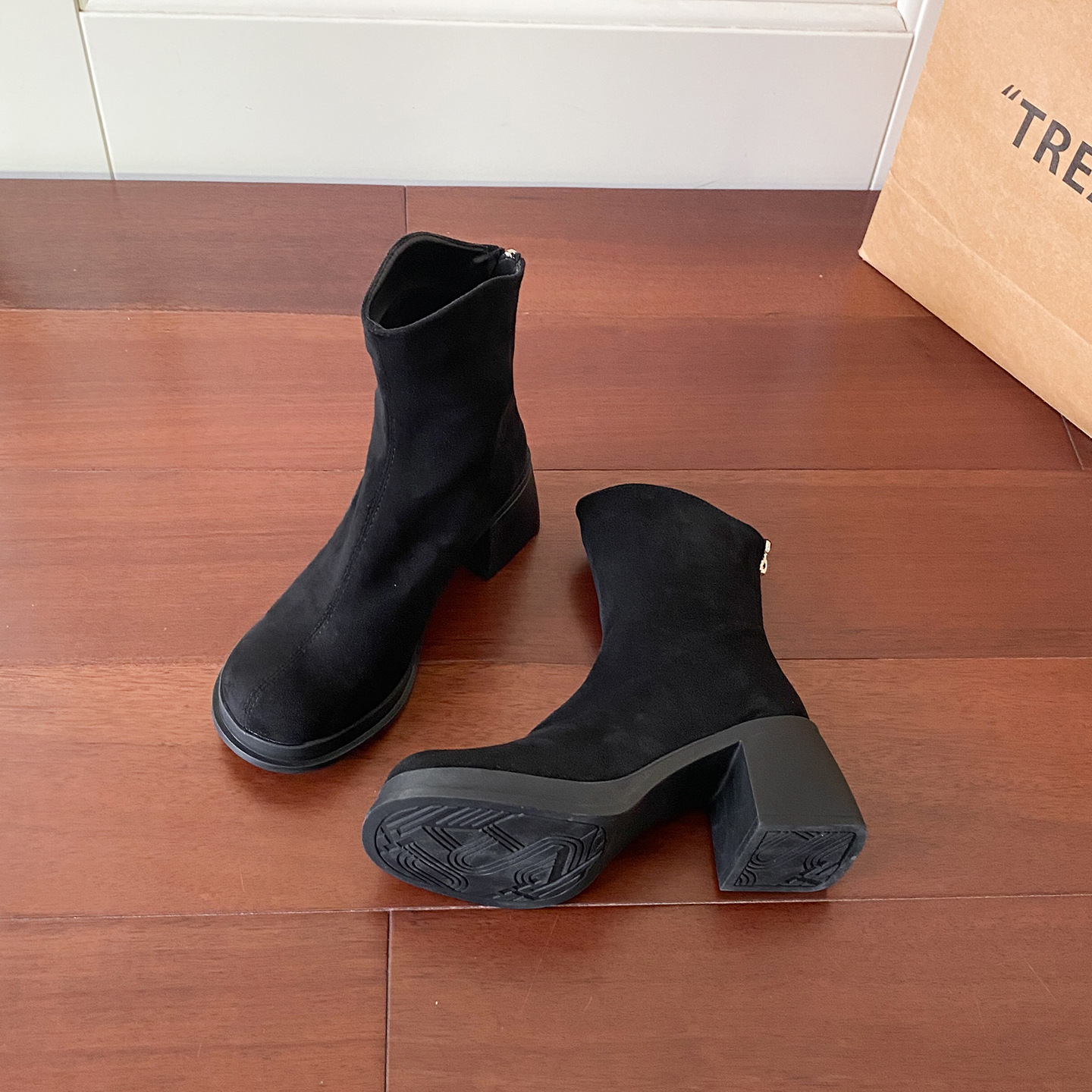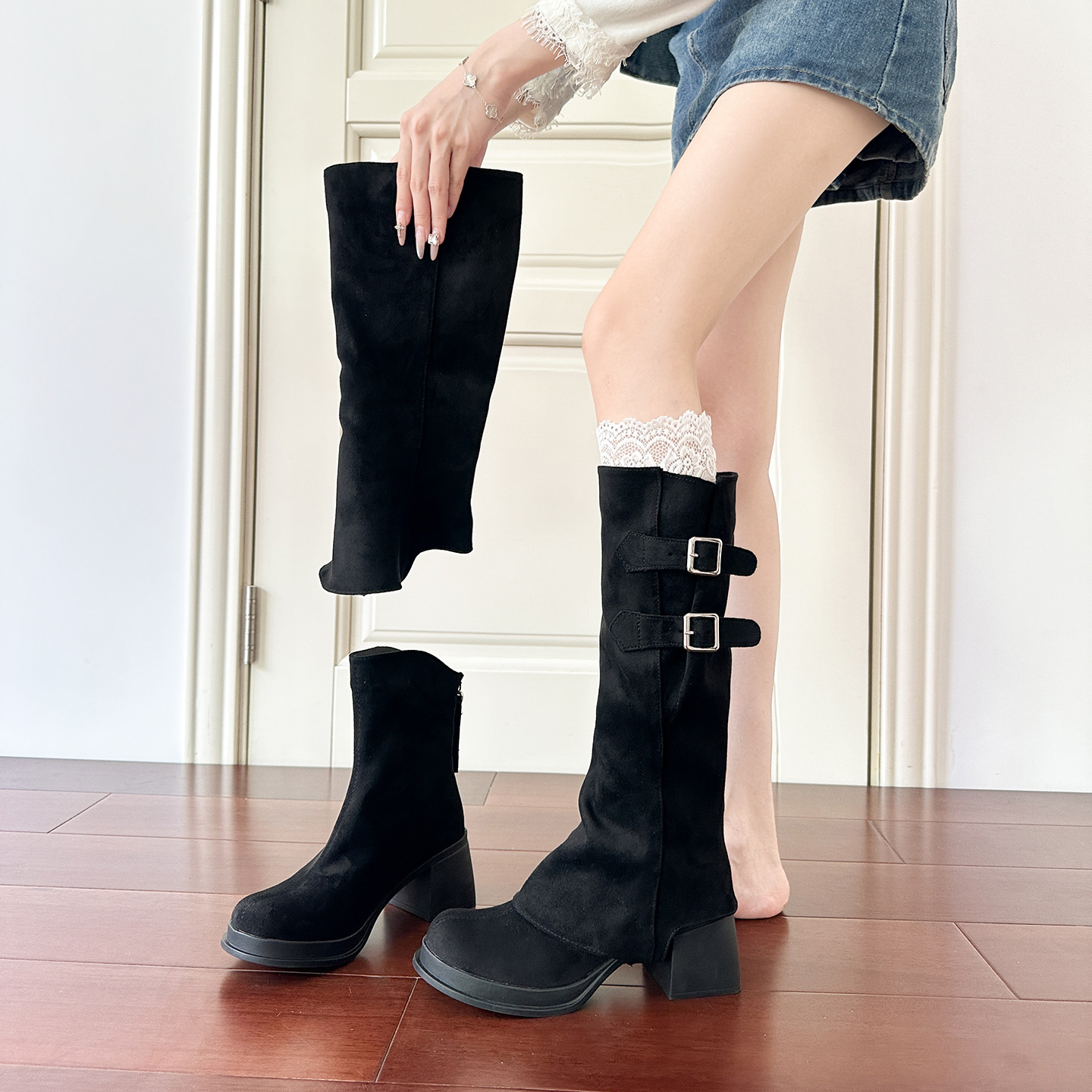 Главная страница > Двухцветные длинные и короткие сапоги. Осень-зима 2021. Новый стиль. Сапоги со съемным ворсом. Сапоги на толстом высоком каблуке. Высокие сапоги на толстой подошве. Брюки в стиле ретро.