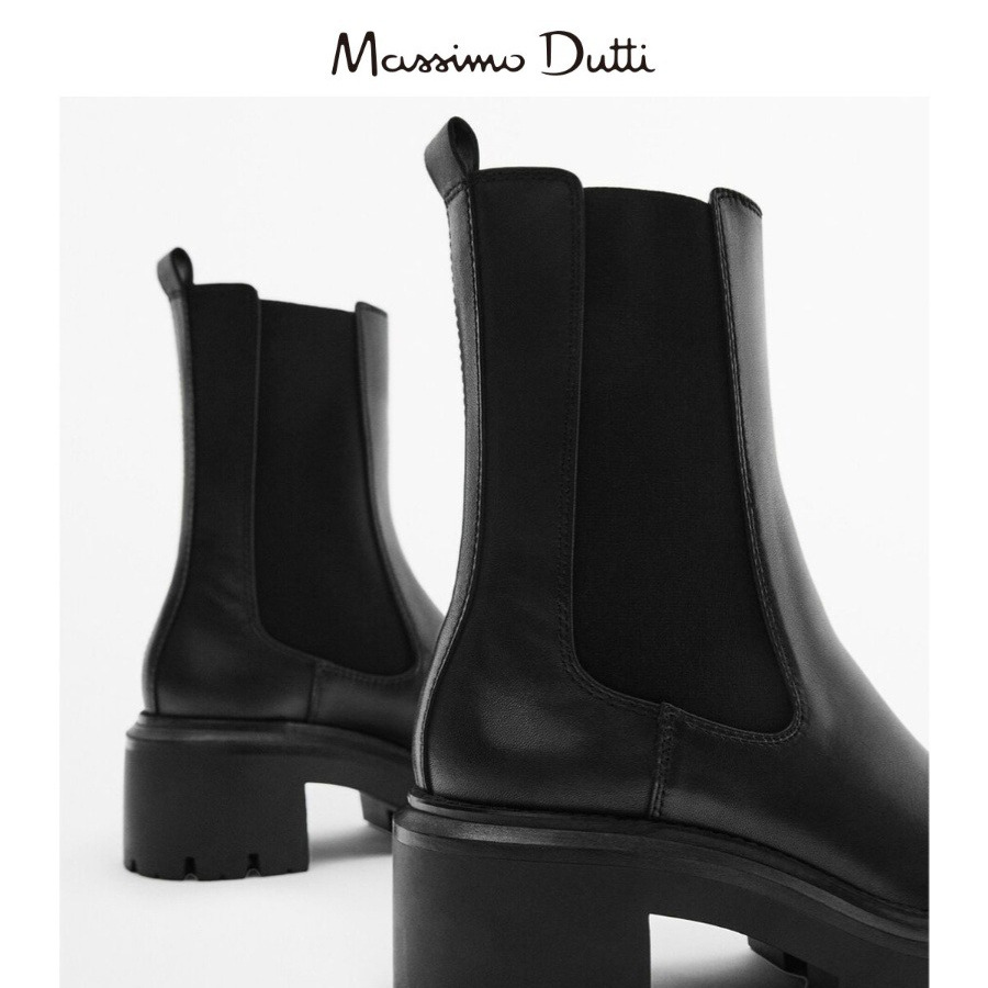 Ботинки Massimo Dutti 2025: Новые осенне-зимние черные женские челси из натуральной кожи с круглым носком на толстой подошве