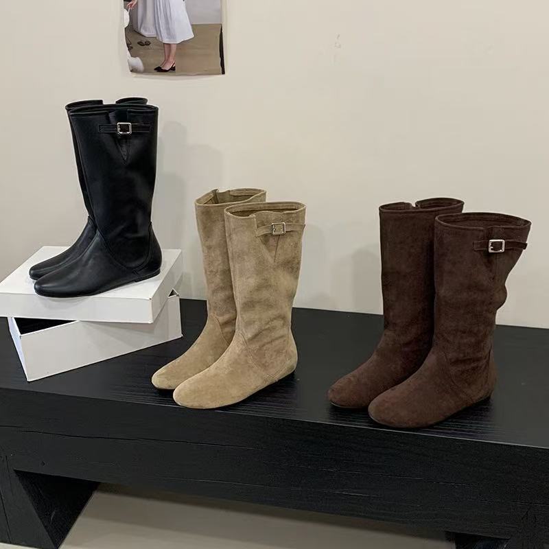 Главная страница > Модные замшевые ботинки средней длины в корейском стиле с круглым носком, универсальные, стройнящие, осень-зима 2025