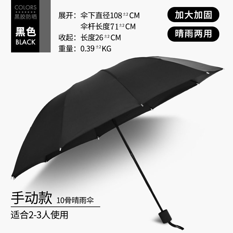 Черный ручной зонт — модернизированная рама с 10 ребрами