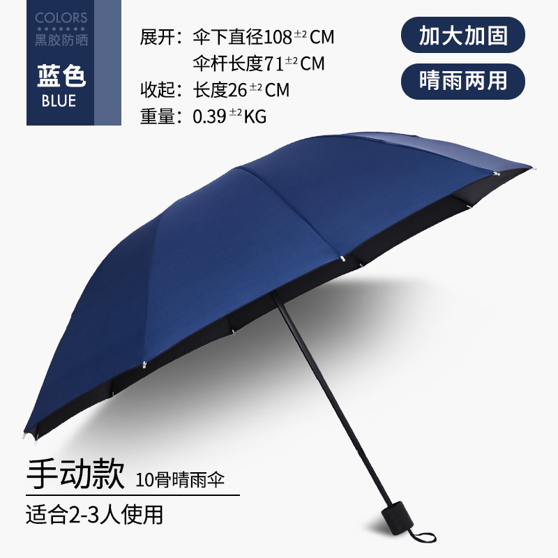 Темно-синий ручной зонт — модернизированная рама с 10 ребрами