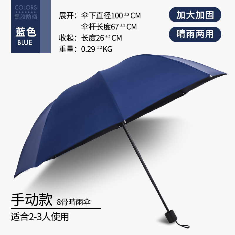 Синий зонт с ручным механизмом - Усиленная рама с 8 ребрами