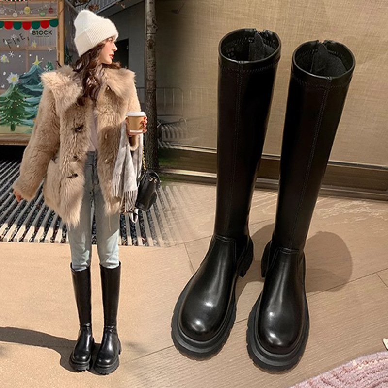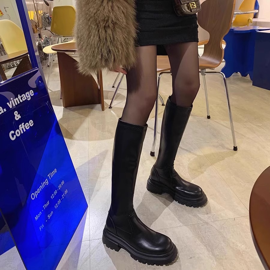 Главная страница > Виноградная мама кожаные сапоги женские 2024 осень и зима новая маленькая труба окружает тонкие толстые плоские сапоги рыцаря