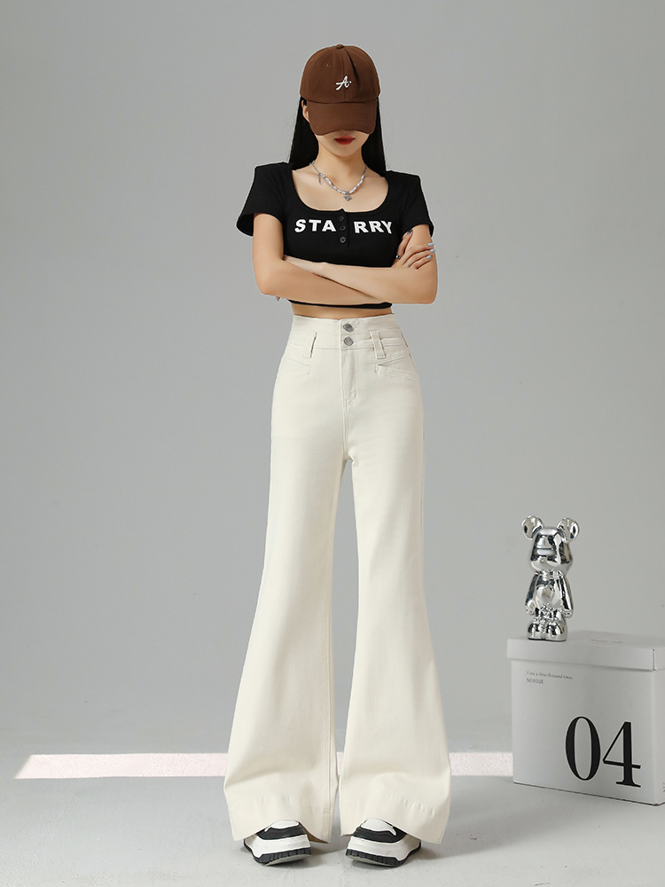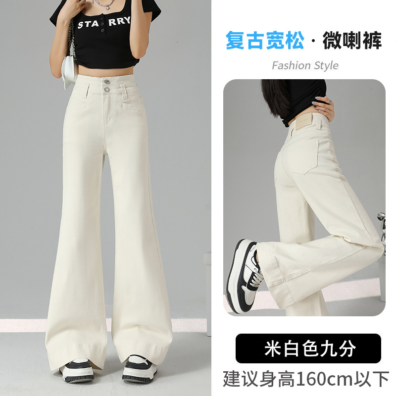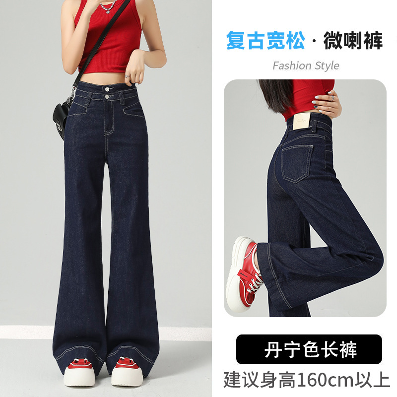 Главная страница > Джинсы женские синие деним, расклешенные, летние, тонкие, новинка 2024, с высокой талией, эластичные, широкие штанины, винтажный стиль.