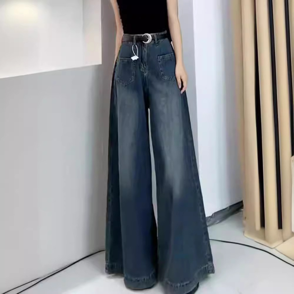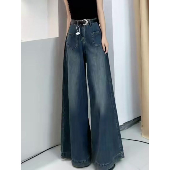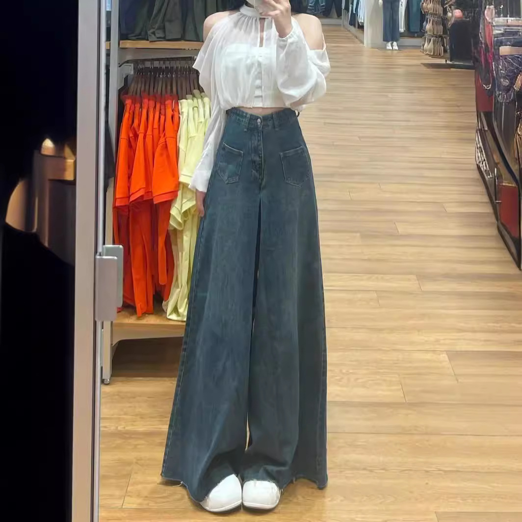 Главная страница > Женские джинсы в американском стиле ретро с широкими штанинами, Осенние новые свободные дизайнерские модные брюки-кюлоты с высокой талией для похудения