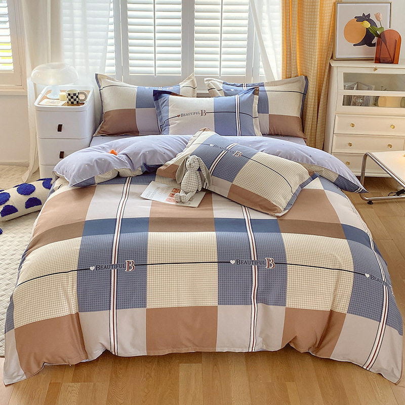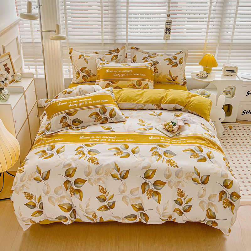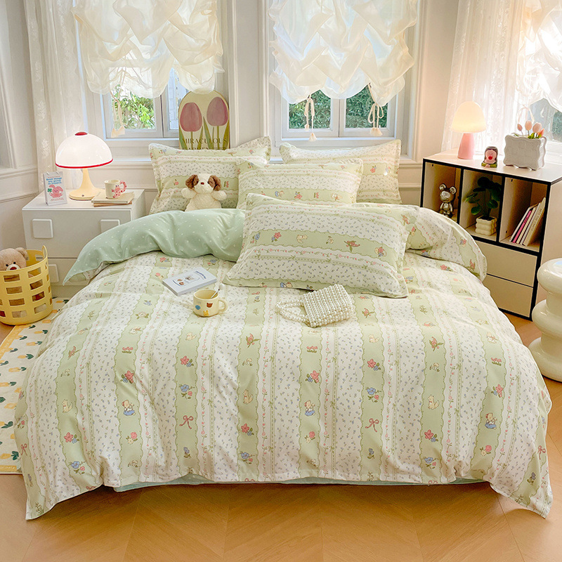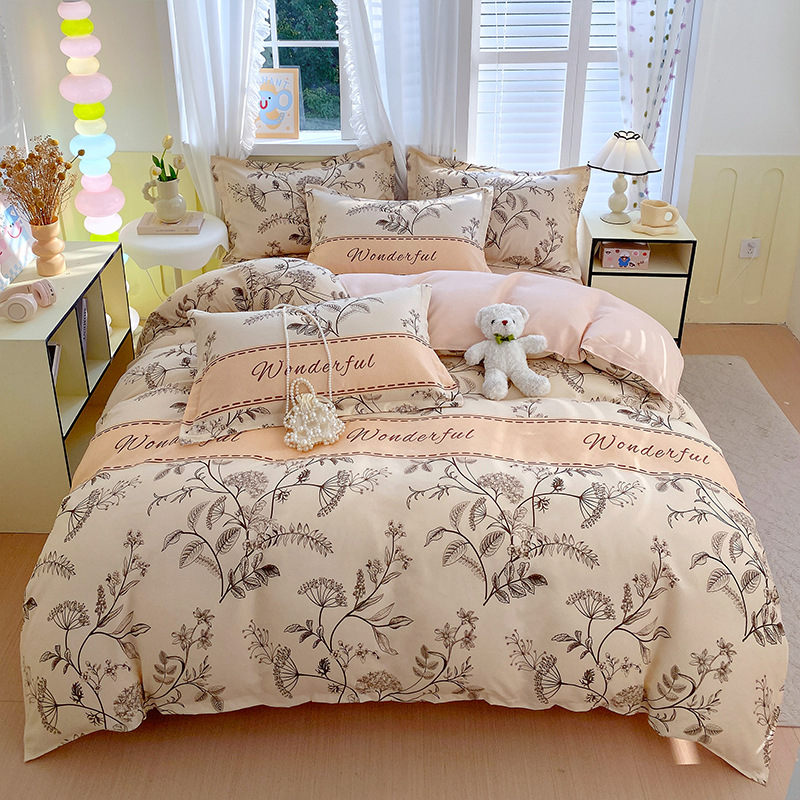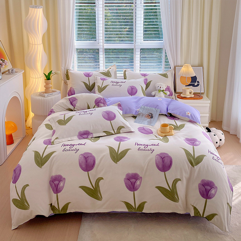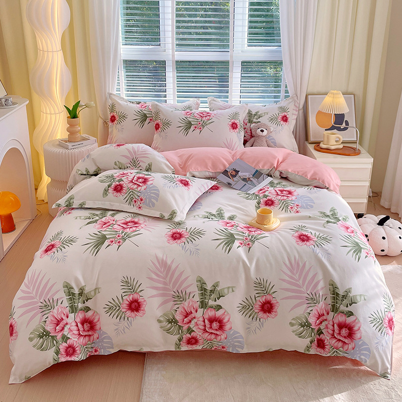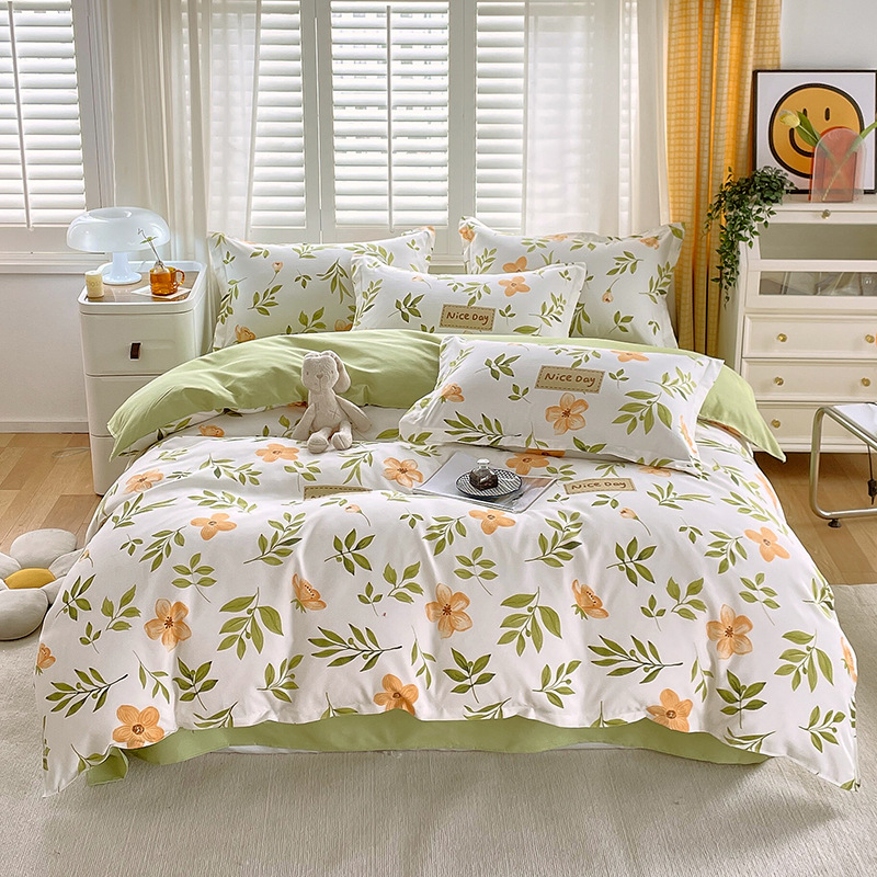 Главная страница > Комплект постельного белья из четырех предметов, свежий стиль, простыня из стираного хлопка, пододеяльник, комплект из трех предметов из приятного для кожи чистого хлопка с начесом, милый стиль.