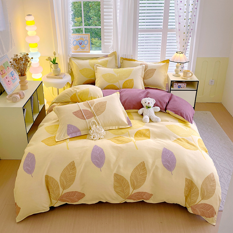 Комплект постельного белья из четырех предметов, свежий стиль, простыня из стираного хлопка, пододеяльник, комплект из трех предметов из приятного для кожи чистого хлопка с начесом, милый стиль.