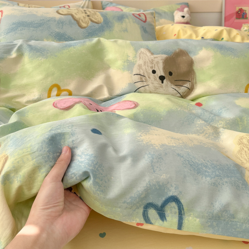 Главная страница > Весенне-летняя кровать из чистого хлопка, комплект из четырех предметов, 100% хлопок, маленькая свежая мультяшная простыня, пододеяльник, комплект из трех предметов для общежития колледжа