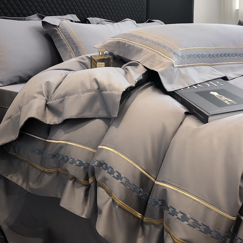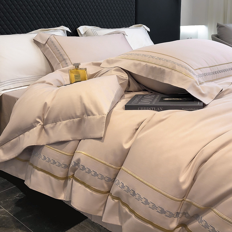 Главная страница > Постельный комплект из 4 предметов из длинноволокнистого хлопка Синьцзян, 200 нитей, плотная вышивка в стиле "гусиная лапка", простыня и пододеяльник из чистого хлопка, Нантун 4