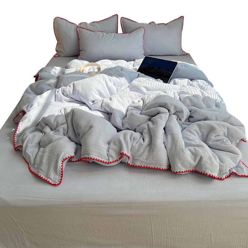 ins маленький свежий двухслойный мятый марлевый комплект из четырех предметов из чистого хлопка, марля из чистого хлопка, приятные для кожи простыни для общежития, комплект из трех предметов