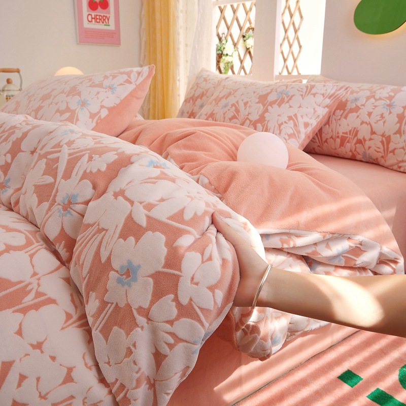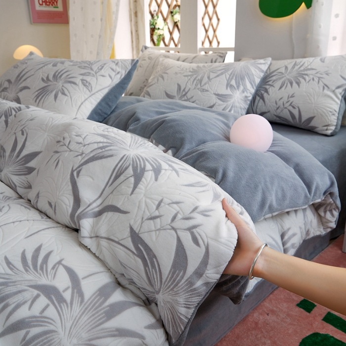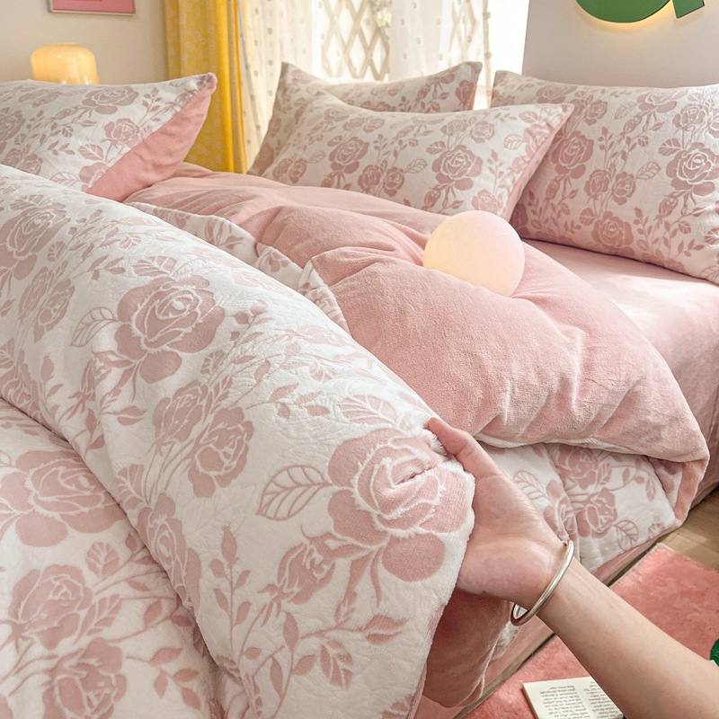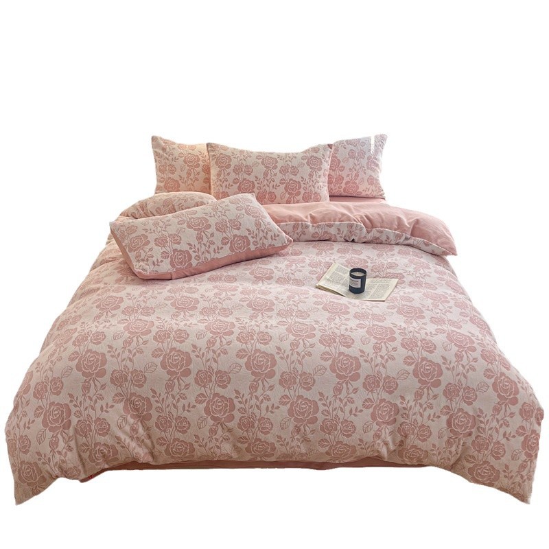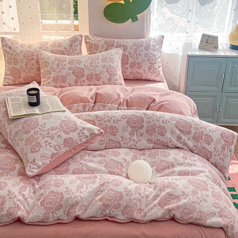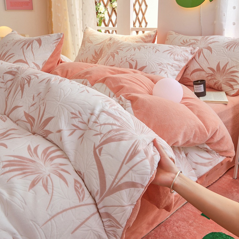 Грезной бархат набор из четырех частей осенью и зимой двухсторонний молочный бархат постельное белье утолщение коралловый бархат простыни набор из трех частей