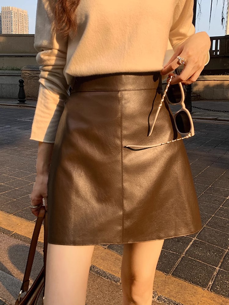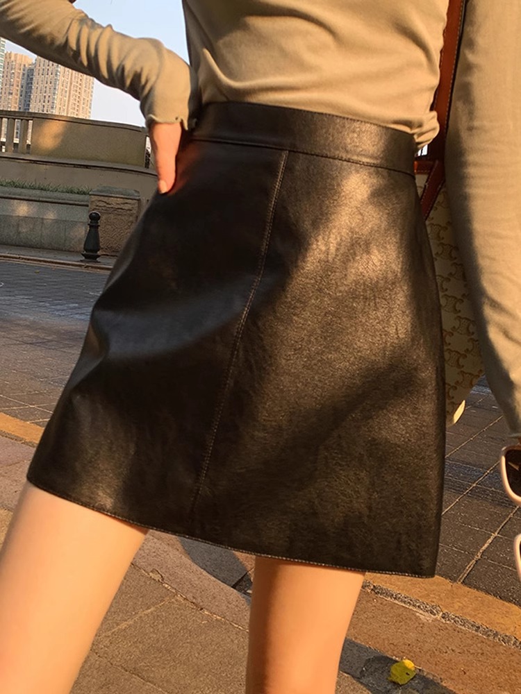 Главная страница > Маленькая юбка женская 2023 осень и зима Новая в этом году популярная элегантная облегающая юбка из искусственной кожи с высокой талией