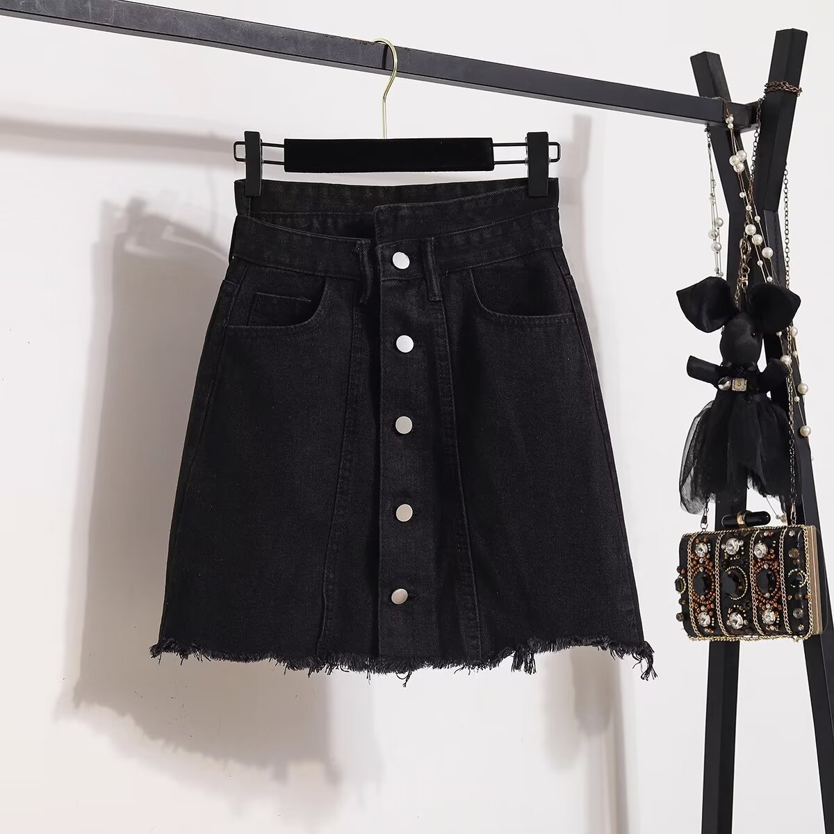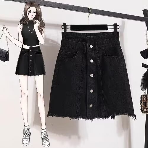 Главная страница > Черная джинсовая юбка средней длины для девочек летом, с завышенной талией, для похудения, асимметричный дизайн, нишевая юбка А-силуэта