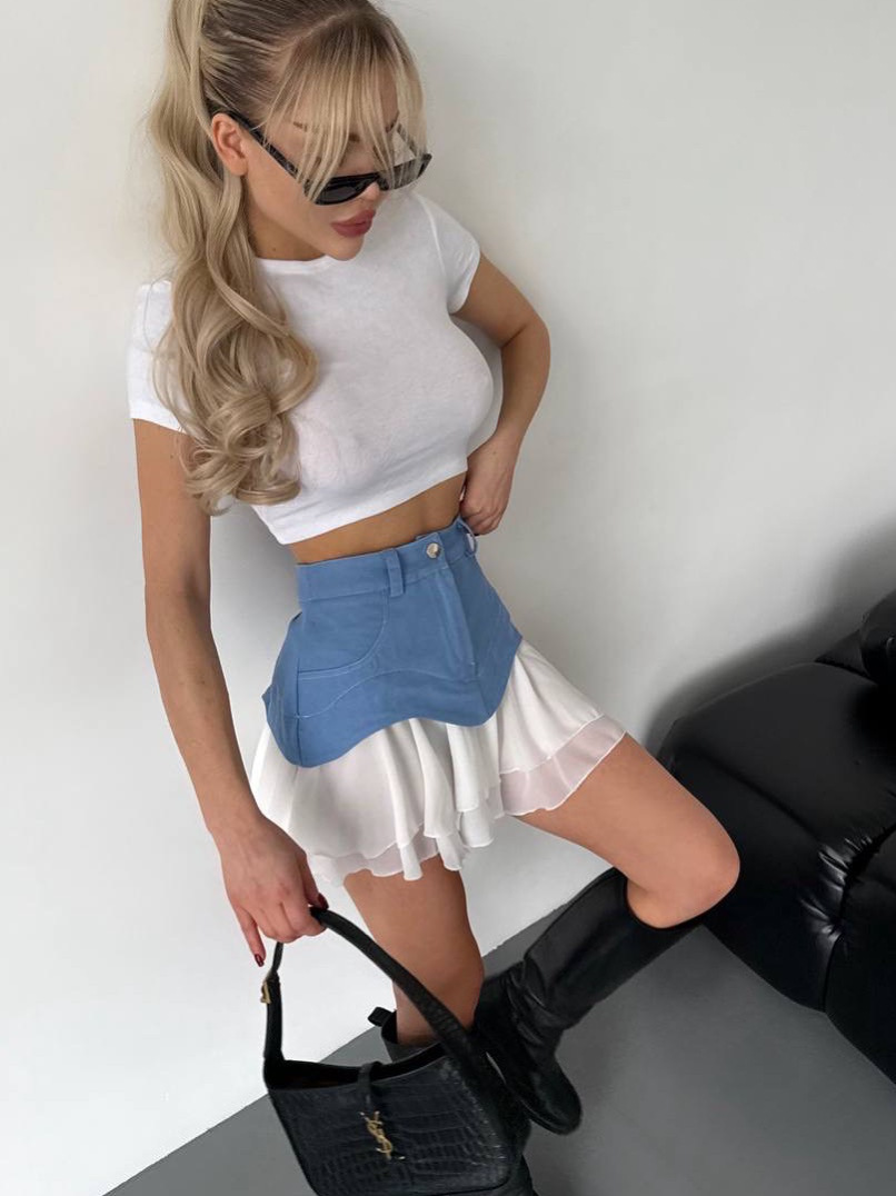 Главная страница > Трансграничная европейская и американская короткая юбка с плиссированной юбкой с высокой талией тонкая женская сумка бедра горячая девушка сексуальная нерегулярная сшитая юбка