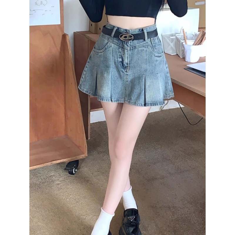 Главная страница > Джинсовая юбка женская корейская версия тонкая 2024 новая весенняя и летняя юбка с высокой талией